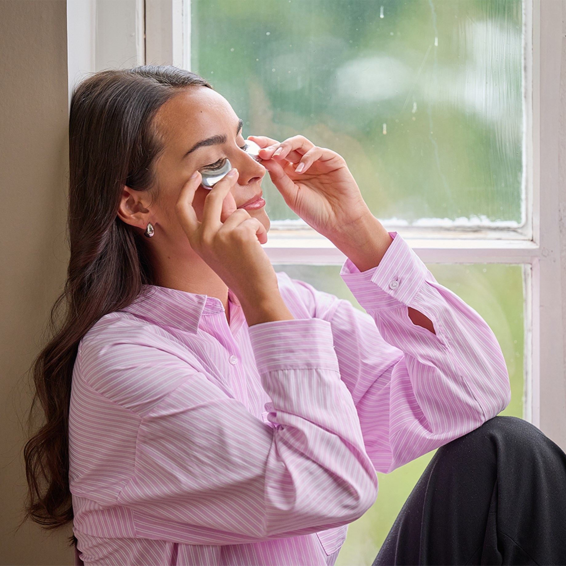 Tips! Du kan använda padsen som ett gua sha-verktyg för behandling av området runt ögonen.