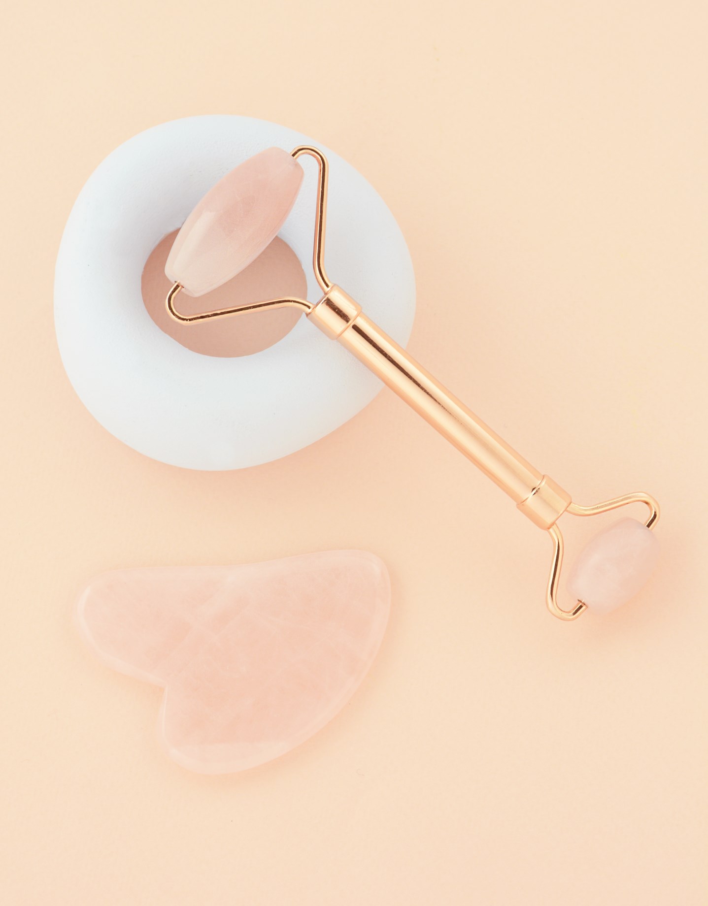 Massera ansiktet med Ibero Roller, en ansiktsroller i vacker rosenkvarts. Ansiktsmassage med roller kan bidra till att mjuka upp musklerna i ansiktet, öka blodcirkulationen samt minska svullnad. Rollern har ett större och ett mindre huvud. Det lilla huvudet är utmärkt för områden runt ögonen medan det större lämpar sig till större områden runt ansikte samt hals, nacke och dekolletage. Rosenkvarts är en sten känd för villkorslös kärlek och som för med sig lycka.