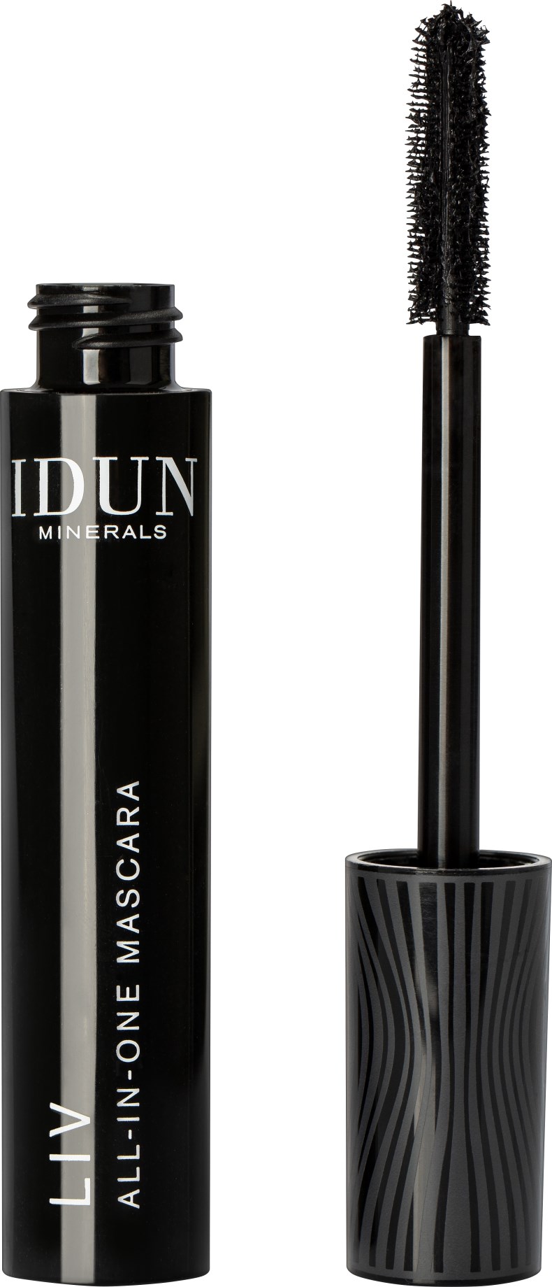 IDUN Minerals Mascara Liv är en mascara all in one, med struktur och borste som ger fyllighet, längd, volym och böjda fransar. Mascaran är svart och ger en flerdimensionell effekt med välseparerade ögonfransar utan att klumpa - perfekt för dig som snabbt vill ha en dramatisk blick som håller hela dagen. Mascaran innehåller högrenade mineraler som ger en intensiv färg, samt innehåller vårdande jojobaolja. Mascaran är helt vegansk och förpackningen är tillverkad i ett material som är lätt att återvinna samt ger lågt koldioxidutsläpp. Mascaran är oftalmologiskt testad och passar även känsliga ögon och kontaktlinsbärare.