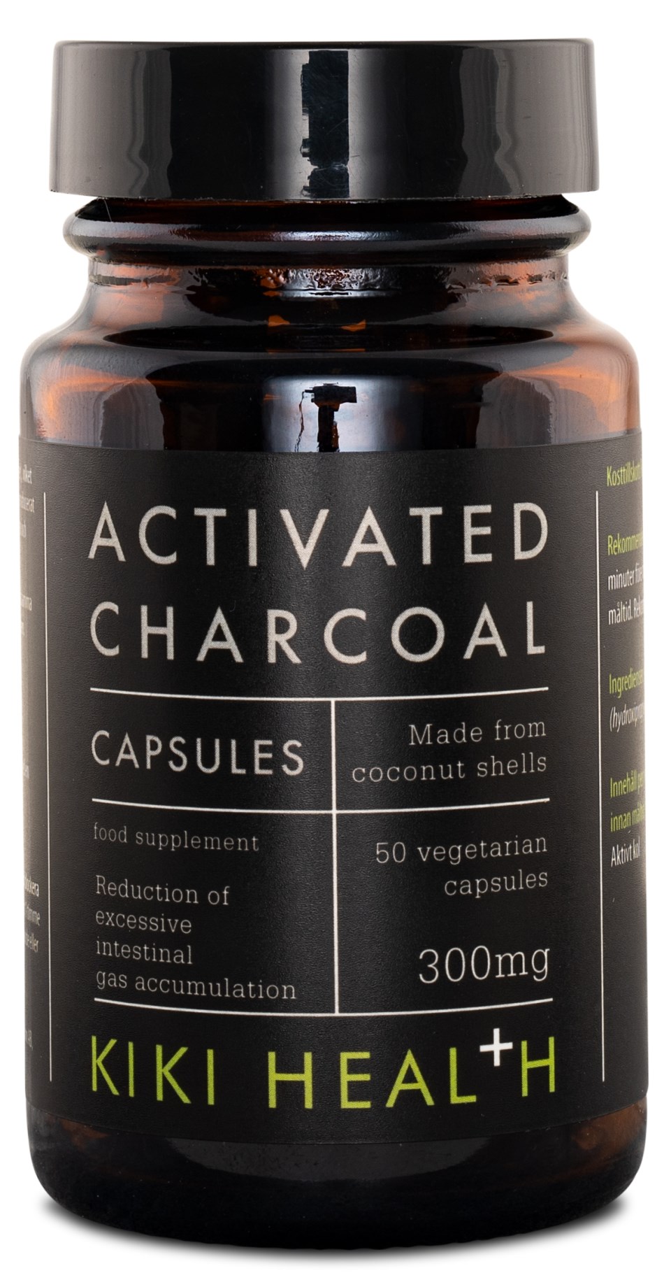 KiKi Health Activated Charcoal Caps är kapslar med 300 mg mycket finmalt aktivt kol. Kolet som används kommer från skalet av kokosnötter och är nedmalet till 5-10 mikrometer. Det gör att kolets absorptionsyta blir mycket stor och att det effektivt tar åt sig av oönskade substanser. Kolets förmåga att absorbera andra ämnen gör att det bland annat används inom hudvårdsprodukter, tandkrämer och tandblekning samt inom sjukvården vid förgiftningar. KiKi Health Activated Charcoal Caps kommer i smidiga kapslar som passar extra bra att använda om du vill underlätta matsmältningen och minska uppblåst mage efter att du ätit.