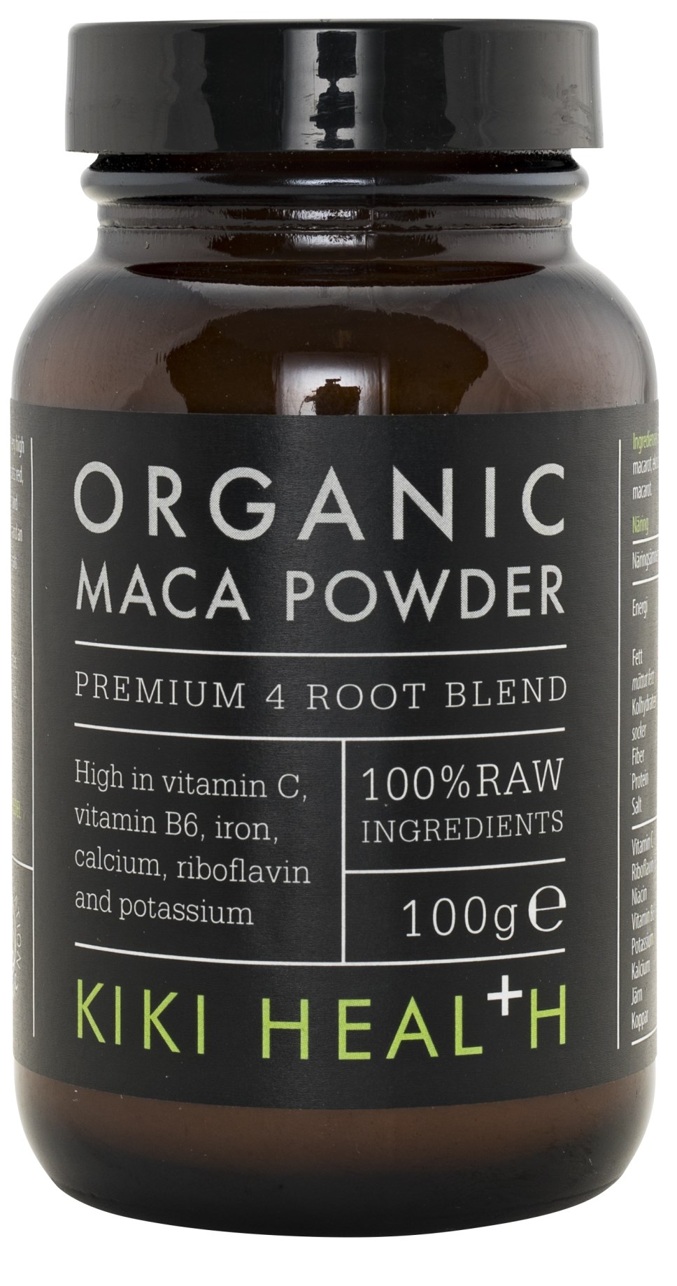 Kiki Health Organic Premium 4 Root Maca Powder är ett ekologiskt pulver av rotfrukten maca. Maca växer i olika färgintervaller, som alla har unika egenskaper. Detta macapulver är en blandning av fyra olika rötter, 25% rött, lila, gult och svart. Pulvret är rikt på c-vitamin, järn och vitamin B12 och B6. Tillsätt en tesked i smoothien, desserten eller i yoghurten.