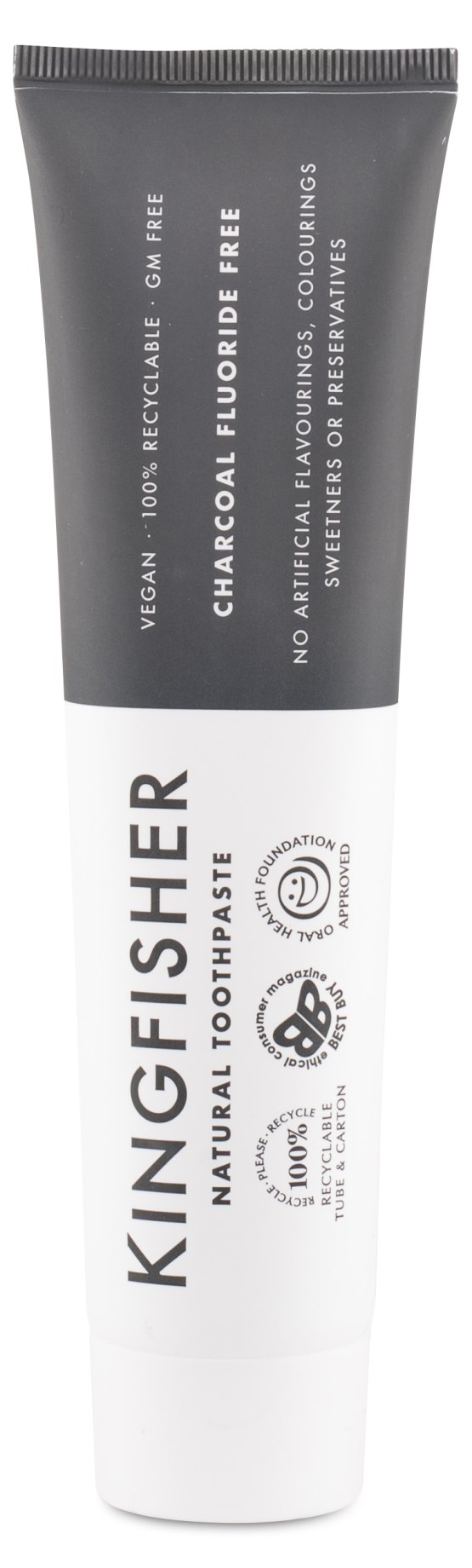 Kingfisher Tandkräm Aktivt Kol (Charcoal) är en tandkräm för rengöring av tänder och tandkött och med en frisk smak av mint ger den även en uppfriskande andedräkt. Kingfisher Tandkräm Aktivt Kol är en tandkräm utan fluor, konserveringsmedel, färgämnen och sötningsmedel. Ett naturligare sätt att borsta tänderna! Dessutom innehåller tandkrämen aktivt kol, som är populärt att använda för naturligt vita tänder.