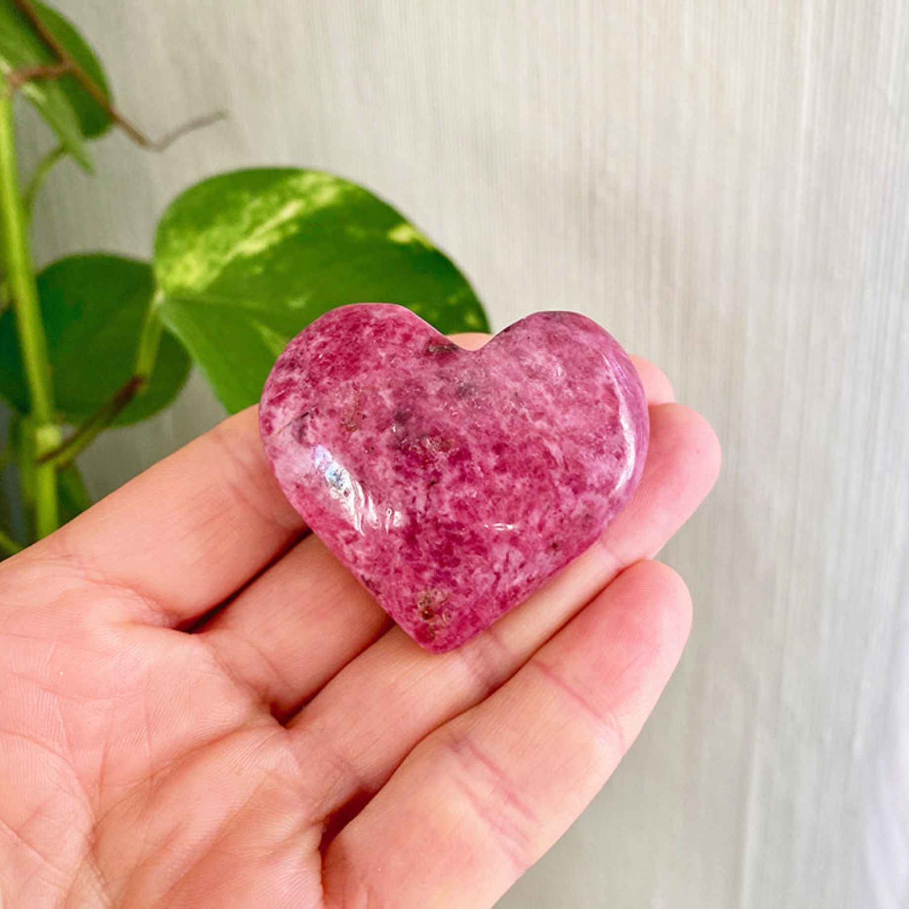 Kristallpunkten Hjärta Rodonit är en ca 4-5 cm stor hjärtformad sten av kristallen rodonit. Rodoniten har en vacker ljus- till mörkrosa färg med små mörka strimmor. Den rosa färgen symboliserar kärlek och förlåtelse, medan de svarta inslagen står för problemlösning och läkning. Kristallen sägs förbättra relationer samt hjälpa till att läka känslomässiga sår. Den är också en mycket balanserande och jordande sten som är bra för dig som vill ha ett bättre energiflöde i kroppen. Lägg den gärna i hemmet för att främja positiv energi och balans, eller håll den i handen vid exempelvis meditation för att ta del av dess egenskaper.