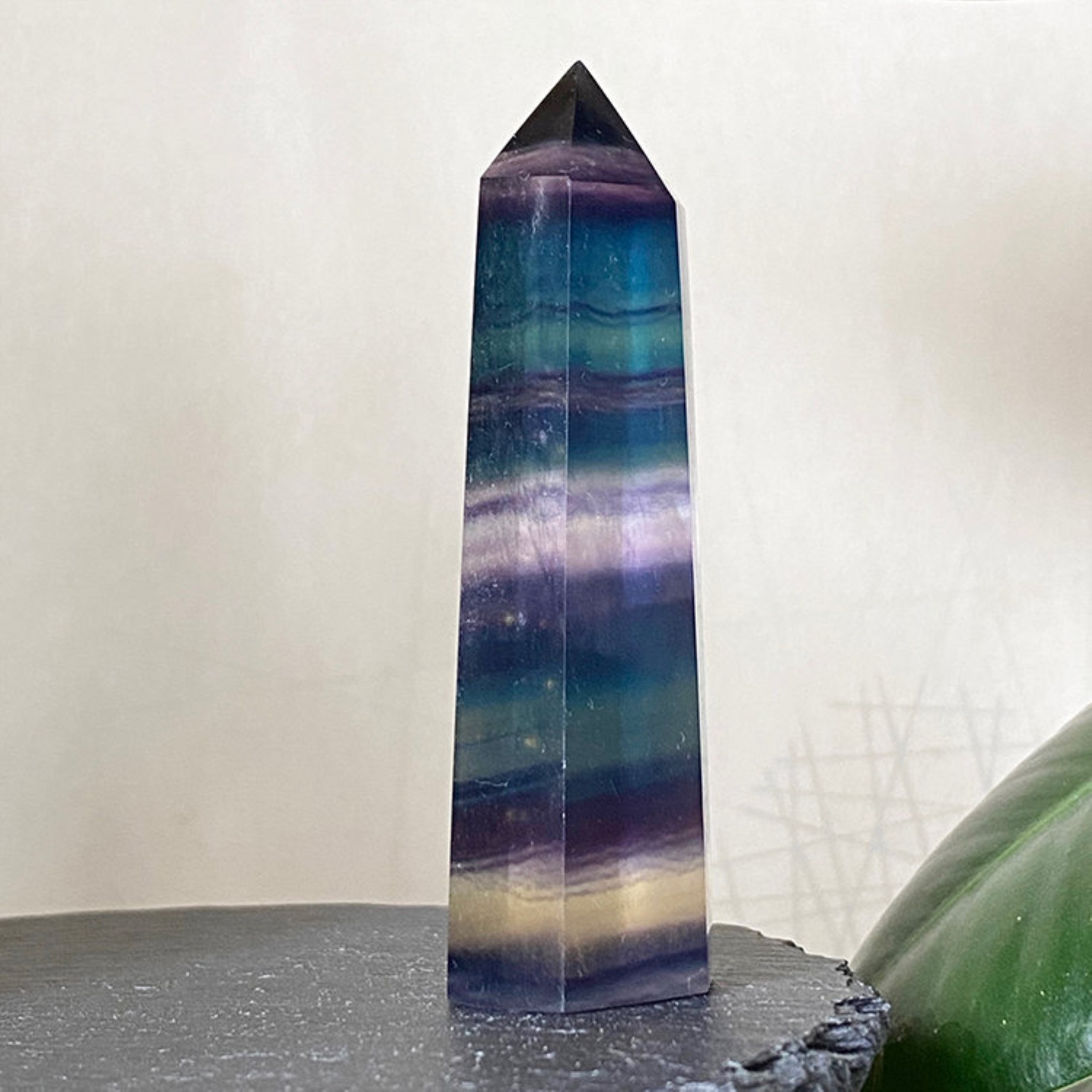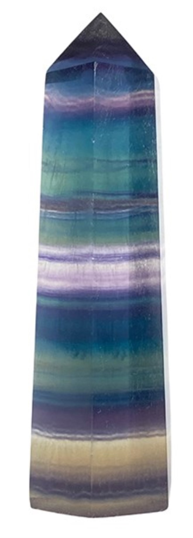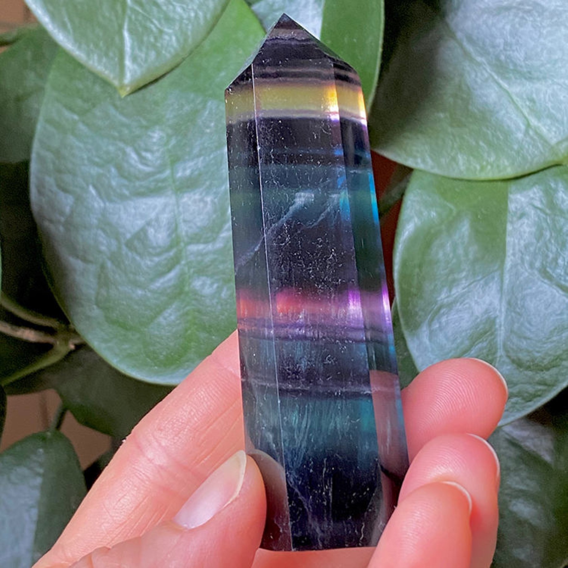 Kristallpunkten Spets Regnbågsfluorit är en handgjord produkt vilket innebär att varje produkt kan skifta något i storlek, form och klarhet. Små sprickor eller ojämnheter kan förekomma naturligt i kristallen eftersom det är ett helt naturligt material.