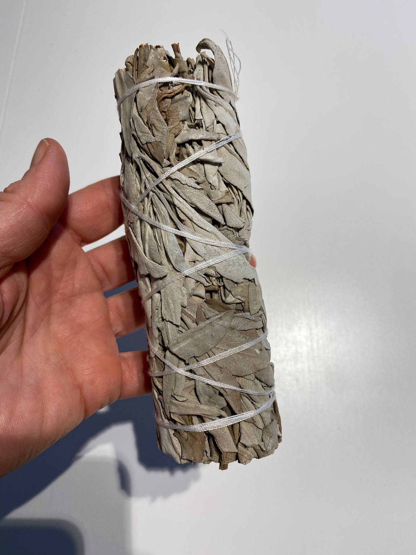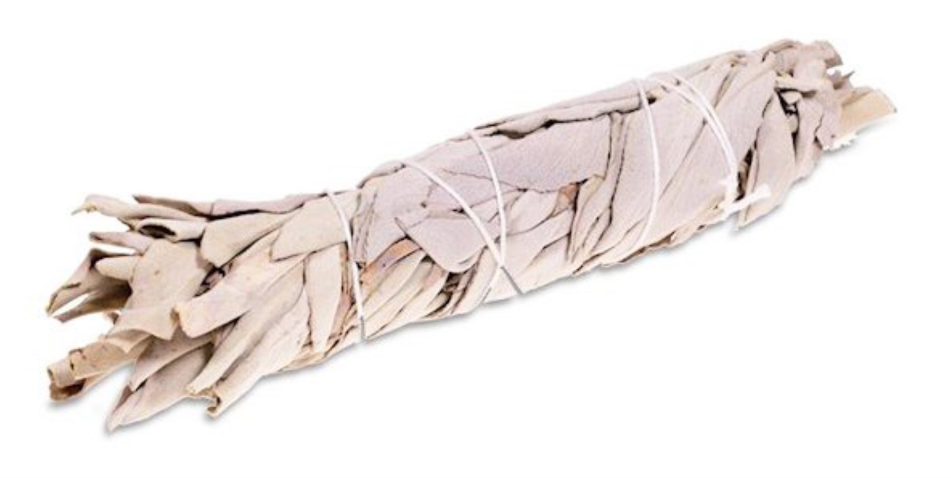 Kristallpunkten Vit Salvia i bunt är en färdig bunt med vit salvia (Salvia apania) som du använder till rökelseritualer. Salvia är bland de vanligast använda växterna för ritualer och meditation. En salviabunt tänder du i ena änden, låter brinna en kort stund och sedan släcker lågan för att låta röken sprida sig i rummet. Många använder det för att frigöra stillastående energi i ett rum eller runt sig själv, eller för rening av kristaller. Finns i två storlekar: Mellan (35-40 g) och Stor (90-100 g).