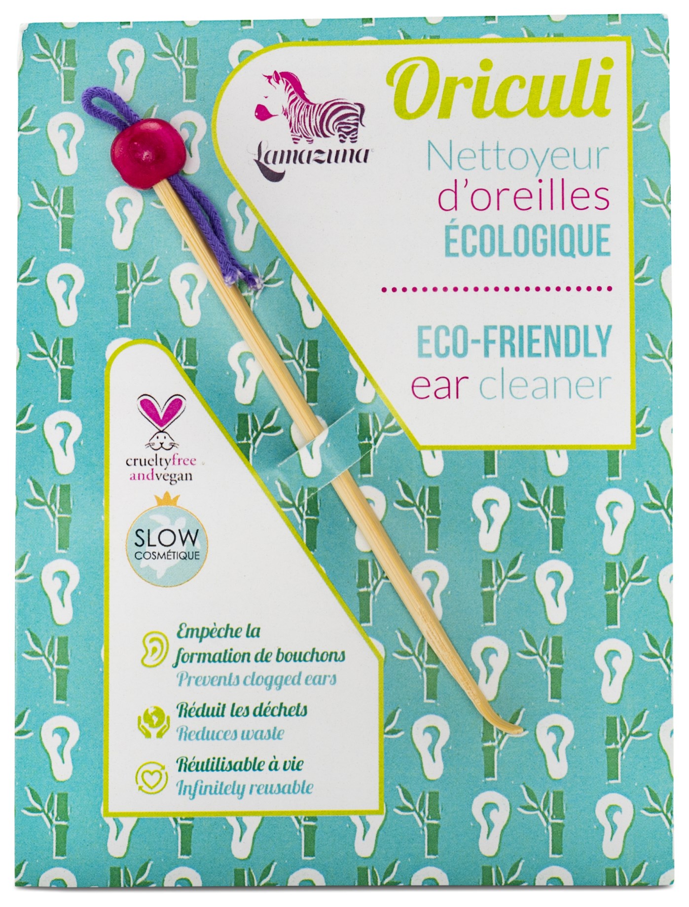 Lamazuna Oriculi Bamboo är ett mer skonsamt och miljövänligt sätt att rengöra öronen på. Den unika designen har sitt ursprung i traditioner från Kina och Japan och dessutom skyddar den trumhinnan eftersom du endast rengör den yttre delen av örat. Använd din Oriculi för att ta bort små smutspartiklar och rester av öronvax, rengör den och återanvänd nästa gång. Lamazuna Oriculi Bamboo går att använda många gånger om vilket gör att du sparar in på naturens resurser jämfört med att använda bomullspinnar med plasthandtag.
