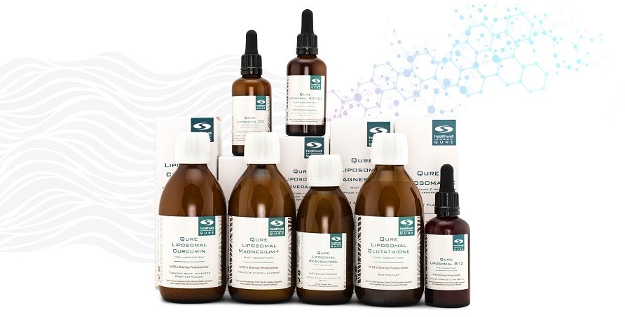 Många av produkterna i Healthwell QURE är liposomala vilket betyder att de är tillverkade med en avancerad teknologi där liposomer används för att öka biotillgängligheten av näringsämnena. Enkelt förklarat är liposomala kosttillskott flytande kosttillskott med näringsämnet bundet till liposomer, som hjälper till att främja upptaget av näringsämnet i kroppen. Liposom är en fettkropp av fosfolipider (lecitin) med samma uppbyggnad som ett cellmembran. Näringsämnet ligger i kärnan av liposomen, som omges av detta fettlager. Studier har visat att liposomala kosttillskott har mycket bättre och högre upptagningsförmåga än traditionella kosttillskott. Alla produkter från QURE är högdoserade och har extra hög absorptionsförmåga i kroppen.