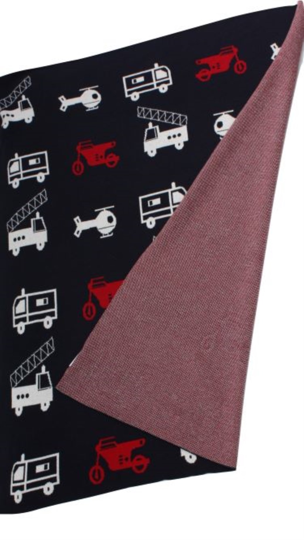 Tut,Tut - Marinblå filt med roliga motiv på olika motorfordon.