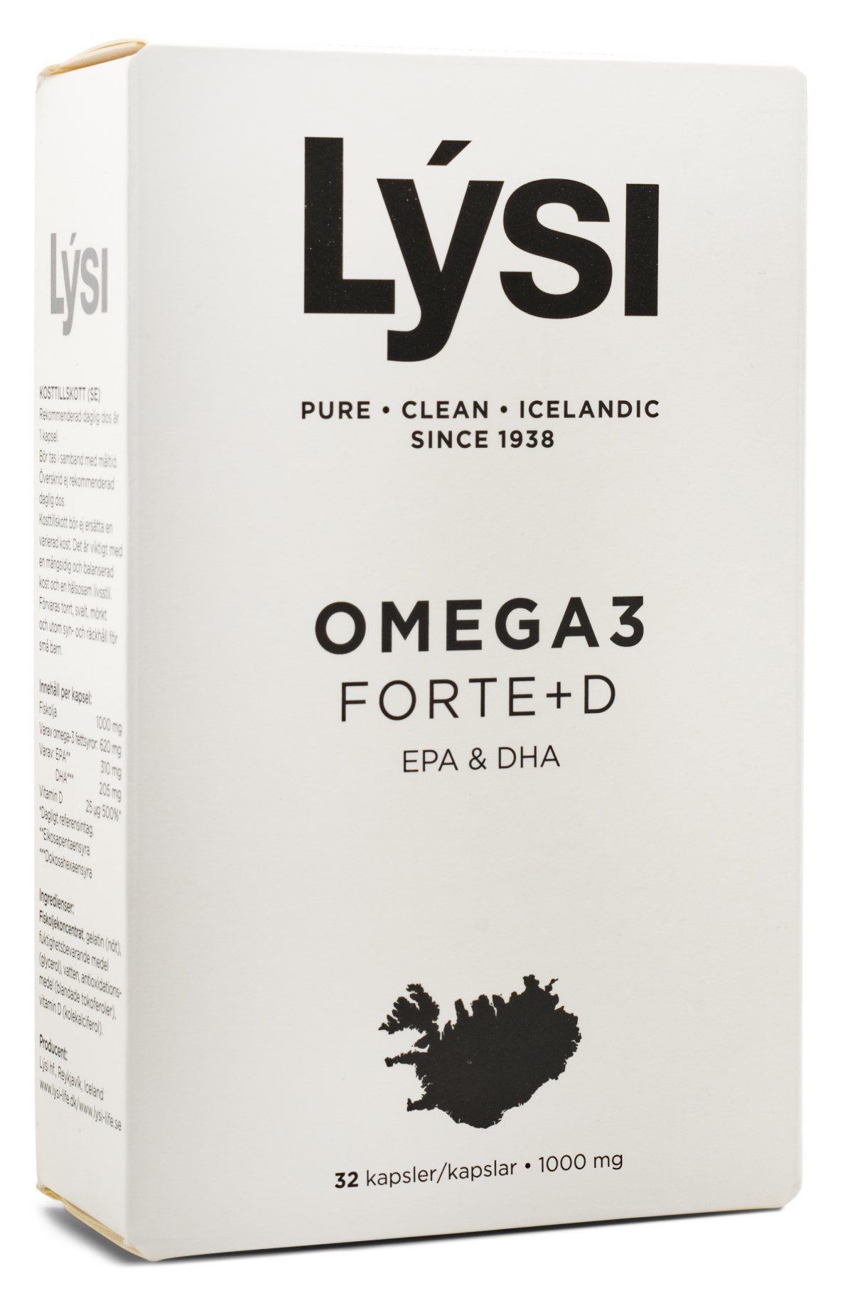 Lýsi Omega-3 Forte + D är ett mångsidigt tillskott som innehåller både omega-3 och D-vitamin. Omega-3 från fisk är ett populärt tillskott tack vare det rika innehållet på fettsyrorna DHA och EPA. Dessa bidrar bland annat till normal hjärnfunktion, normal cellbildning och en normal hjärt- och kärlhälsa. Dessutom minskar ett dagligt intag av omega-3 risken för blodproppar tack vare att det minskar blodets levringsförmåga. Vitamin D i sin tur är ett fettlösligt vitamin som vi i första hand får i oss från solen och till viss del från kosten. Under de mörka vintermånaderna kan det därför vara svårt att få tillräckligt med D-vitamin på grund av solens frånvaro, särskilt om man inte vistas utomhus under dagtid. Vitamin D bidrar bland annat till upptaget av kalcium i kroppen samt till ett välfungerande immunsystem.