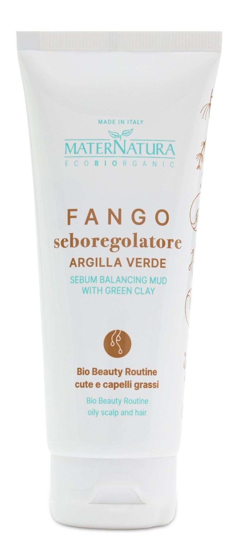 Rengör hårbotten på djupet med MaterNatura Sebum Balancing Mud with Green Clay, en vegansk lermask av grön lera för fet hårbotten. Hårmasken rengör på djupet och tar effektivt bort orenheter och överflödigt talg. Grön lera är ultra-absorberande och absorberar gifter som gärna lägger sig i hårbotten. Ingredienserna salvia och rosmarin hjälper till att normalisera talgkörtlarnas aktivitet. Med denna hårmask syresätter du och förser din hud med mineraler.