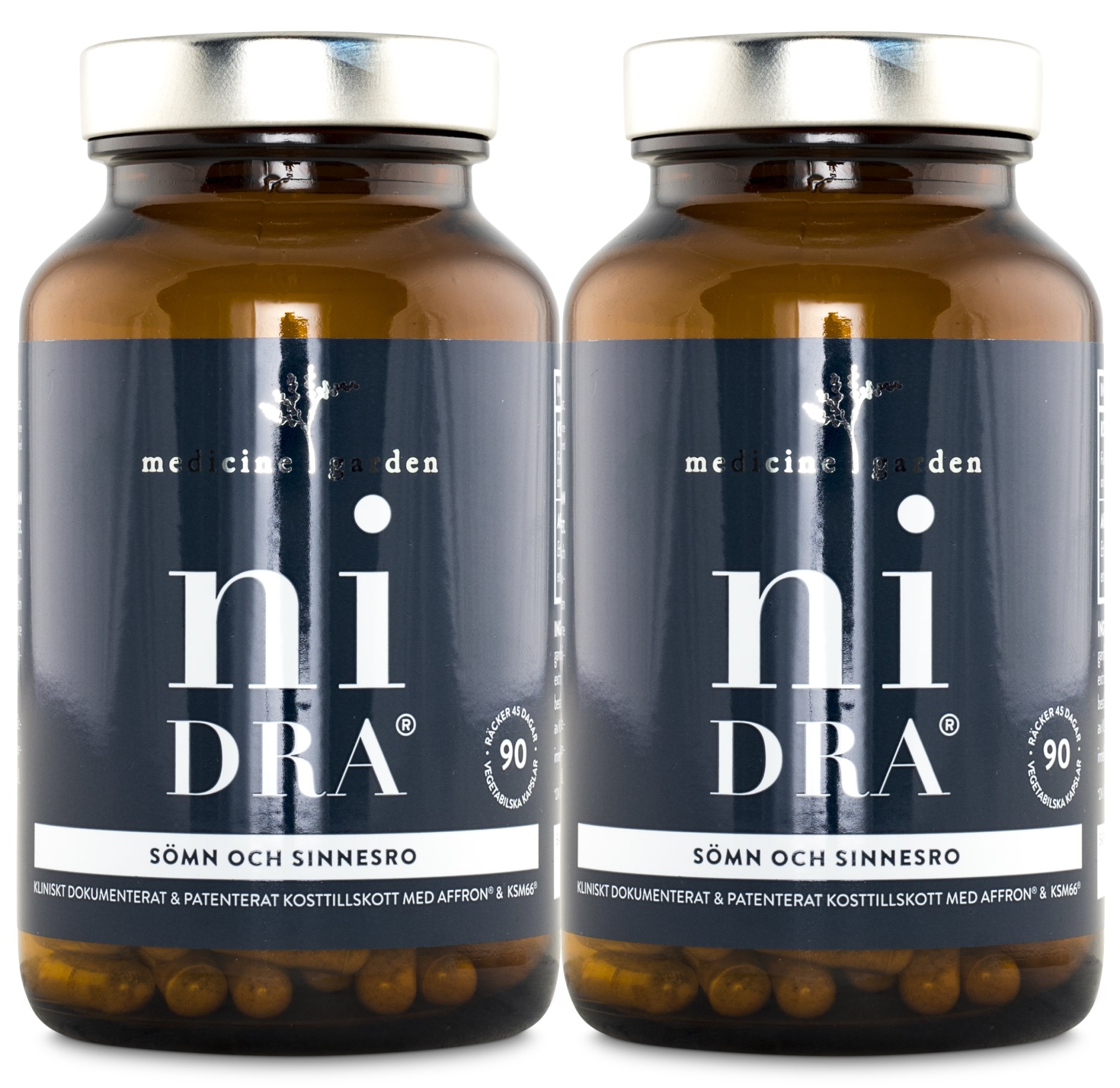 Medicine Garden niDRA är ett kosttillskott som består av de patenterade extrakten Affron® (saffran) och KSM66® (ashwagandha). Denna traditionella kombination är naturligt lättupptaglig och har använts under tusentals år i syfte att främja sinnesro och sömn. Ingredienserna i Medicine Garden niDRA är odlade helt utan kemikalier, och produkterna analyseras för att säkerställa att de inte innehåller några föroreningar eller tungmetaller.