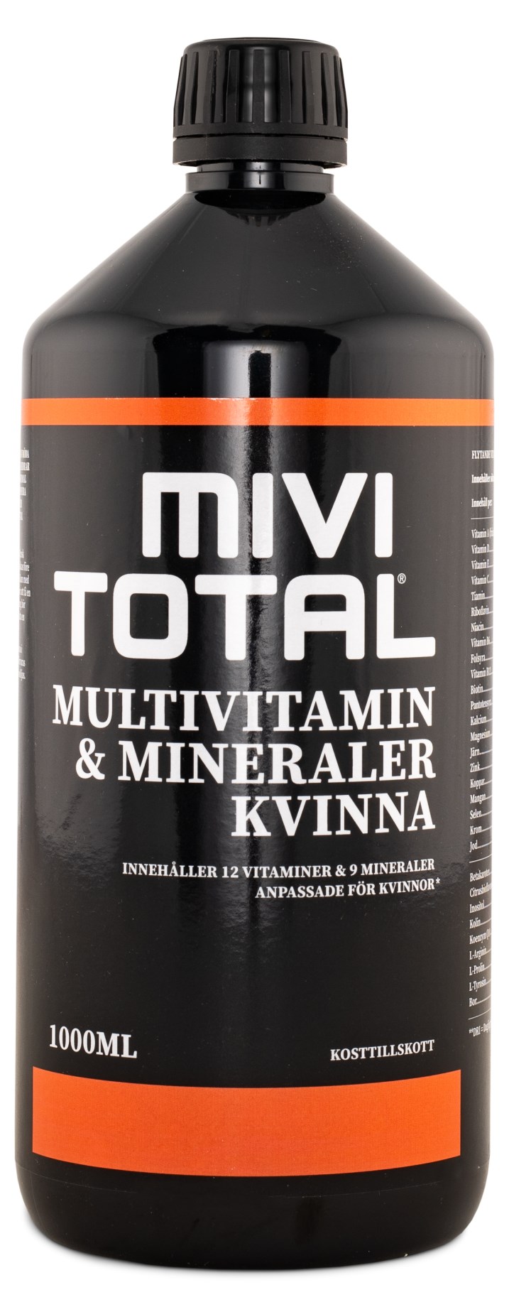 Detta är ett vitamin- och mineralkomplex anpassat efter kvinnors unika behov. Produkten innehåller järn för att bidrar till normal bildning av röda blodkroppar och hemoglobin. Utöver järn så innehåller Mivitotal Kvinna även pantontensyra (vitamin B5) för att bidra till minskad trötthet och upprätthålla normal mental prestation samt zink som hjälper till att bibehålla normalt hår, hud och naglar.