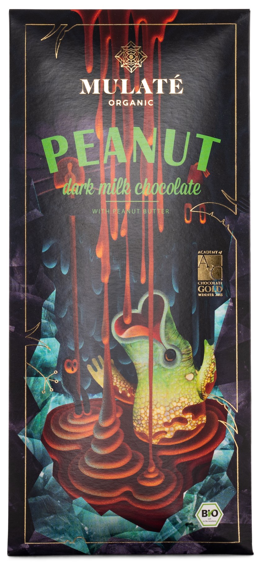 Peanut - En mörkare mjölkchoklad med jordnötssmör. Chokladen har en rik smak av jordnöt och en len konsistens.