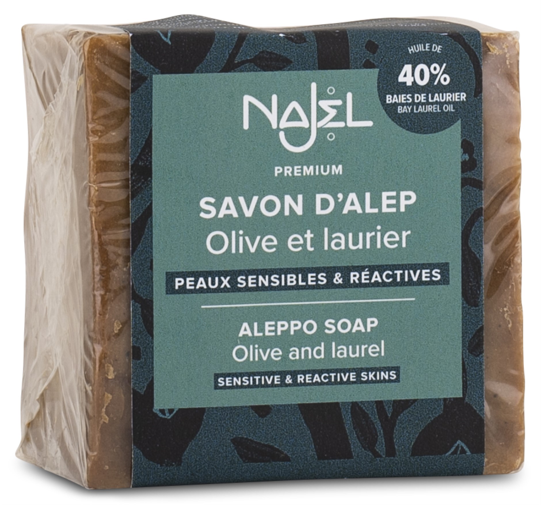 Tvätta ansikte, kropp och hår med Najel Aleppo Soap 40%, en mild och återfuktande Aleppotvål. Den består av 40 % lagerbärsolja och framställs genom en varm förtvålningsprocess av 100 % olivolja och lagerbärsolja. Tvålen passar känslig och reaktiv hud och har lugnande egenskaper. Desto högre koncentration lagerbärsolja, desto mer lugnande anses tvålen vara på hudproblem.