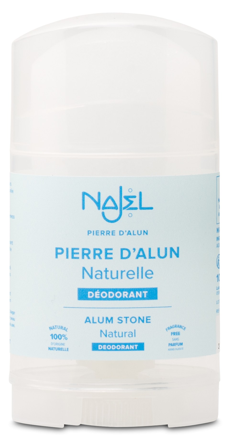 Najel Alum Stick är ett stick av polerad alumsten, perfekt som naturlig deodorant. Alumsten har naturligt antibakteriella egenskaper vilket motverkar bakterier som kan orsaka dålig lukt. Kan användas både under armar och på fötter. Hypoallergen och doftfri!