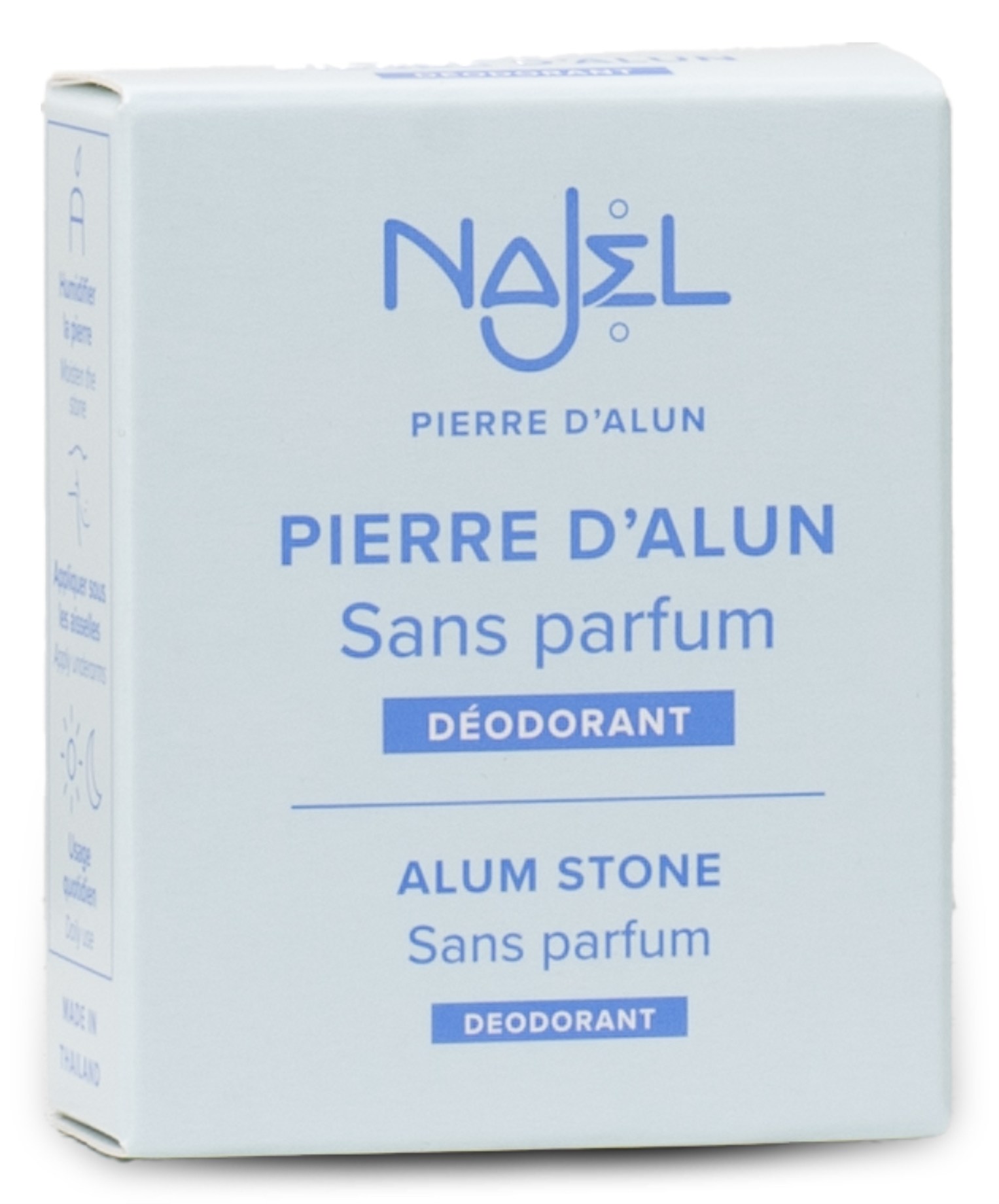 Najel Alum Stone är perfekt för dig som är ute efter en naturlig deodorant. Najel Alum Stone är en alunsten, en mineral som är naturligt förekommande i olika delar av världen. Då den har antibakteriella egenskaper för att motverka bakterier som orsakar dålig lukt är den ett perfekt alternativ att använda som naturlig deodorant. Du behöver endast fukta stenen innan applicering och den kan användas både under armar och på fötter. Stenen är hypoallergen och doftfri.