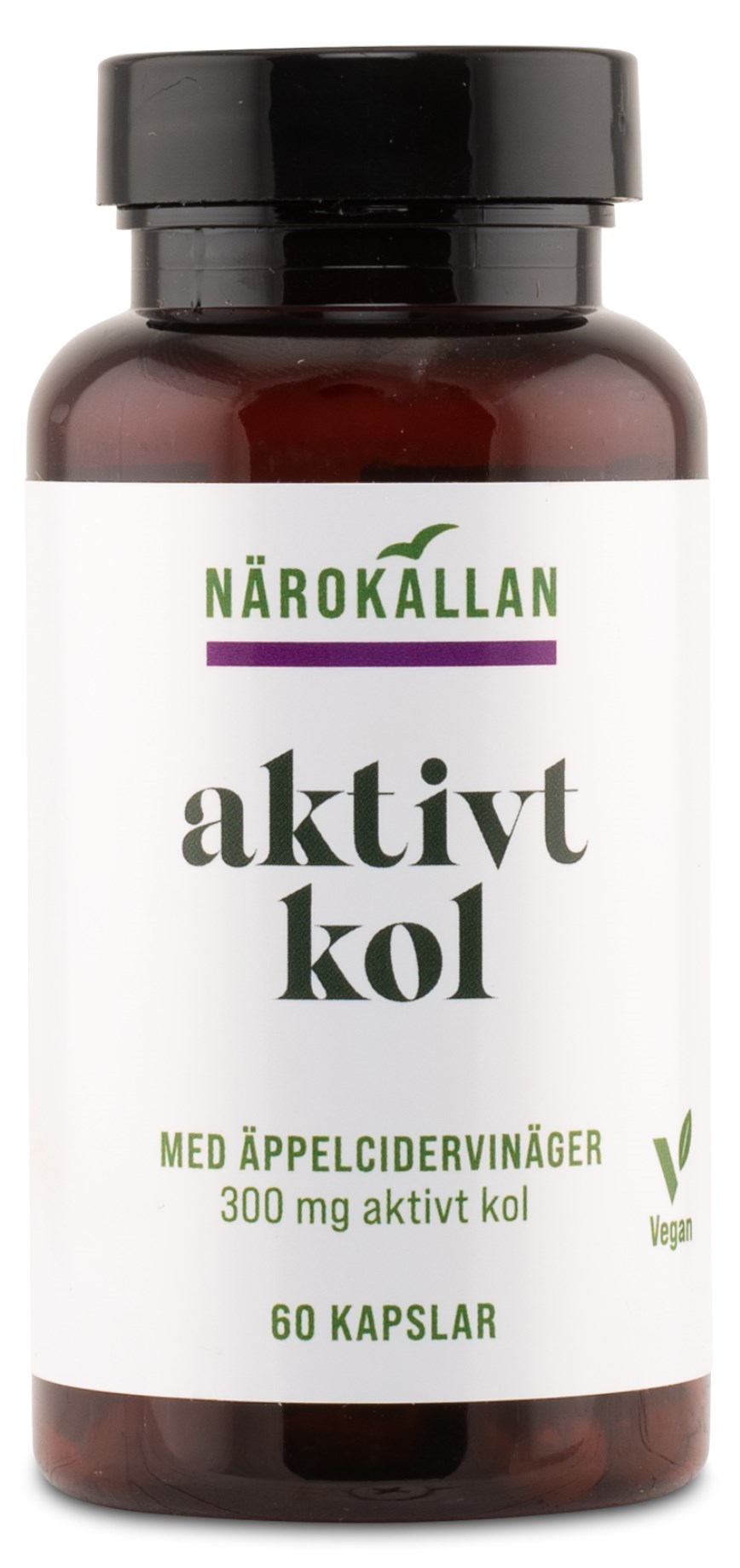 Närokällan Aktivt Kol + Äppelcidervinäger är ett tillskott med 300 mg aktivt kol och 250 mg äppelcidervinäger per kapsel. Kombinationen arbetar för att stötta matsmältningen och aktivt kol kan motverka uppsvälld mage.