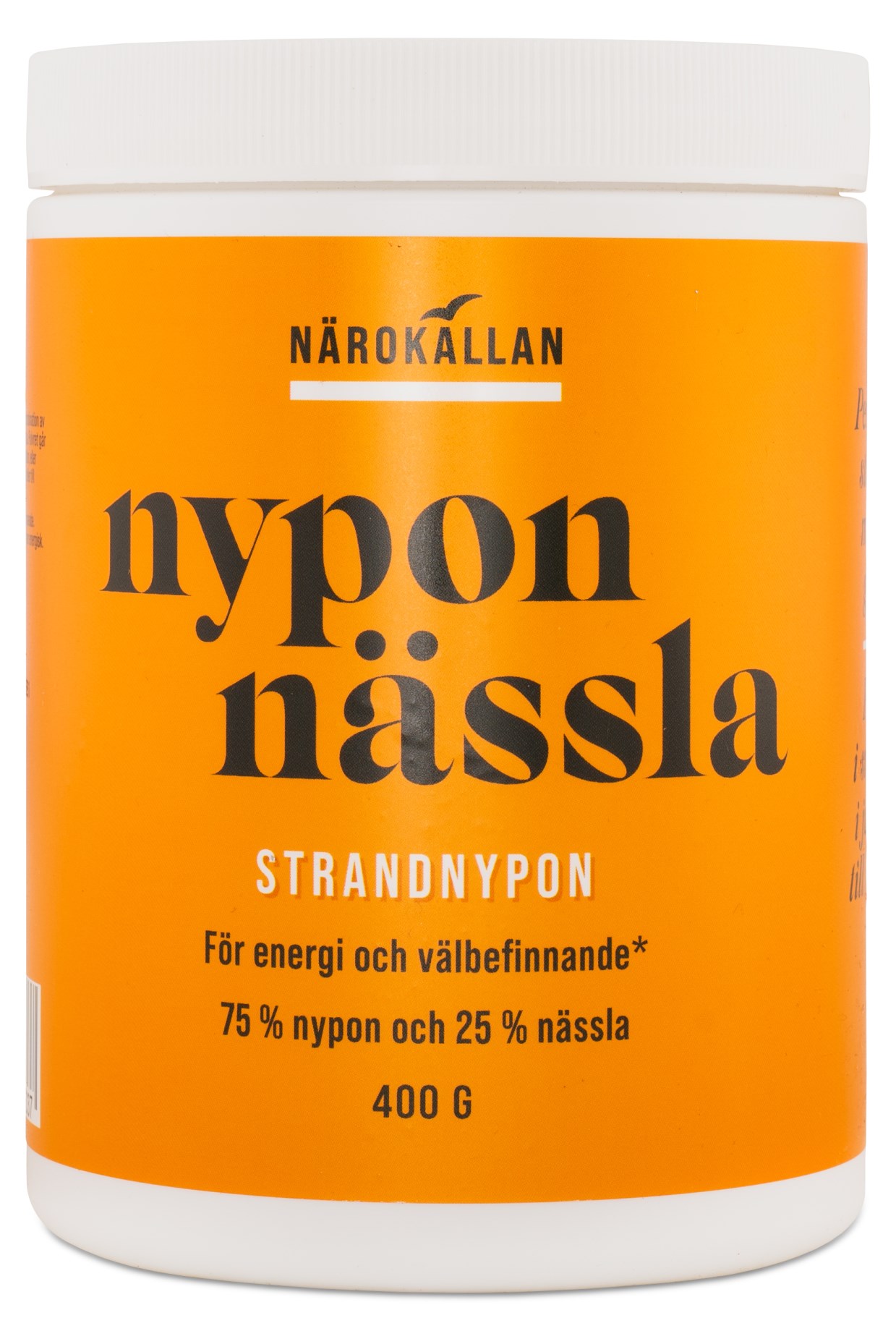 Närokällan Nypon Nässla är en blandning av strandnypon och nässla i pulverform. Perfekt för att strö över gröten, i smoothien, i juice eller till bakning. Blandningen består av 75% strandnypon och 25% nässla. Nässlor är naturligt rika på vitaminer, mineraler, klorofyll och aminosyror. Nypon är också fulla av vitaminer och mineraler och är även rika på antioxidanter. Ge kroppen en naturlig näringsboost!