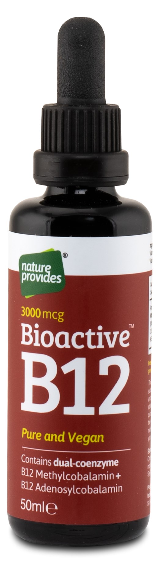 NatureProvides Bioactive B12 är en biotillgänglig, potent blandning som innehåller dubbelt koenzym metylkobalamin och adenosylkobalamin – de mest aktiva formerna av B12! Innehåller inga konserveringsmedel och färgämnen. Tillskottet har blandats ut med renat vatten, och innehåller inga konserveringsmedel eller färgämnen.