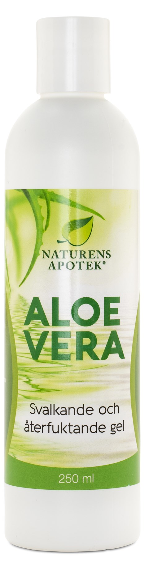 Aloe Vera Gel innehåller 100 % ren aloe vera som fungerar både återfuktande och svalkande på huden. Använd gelen som en daglig hudkräm eller för att dämpa irriterad hud så som vid solsveda. Gelen innehåller även vitamin E som lindrar vid torr och narig hud. Aloe Vera Gelen går snabbt in i huden utan att kladda och lämnar därför inga märken på kläder.