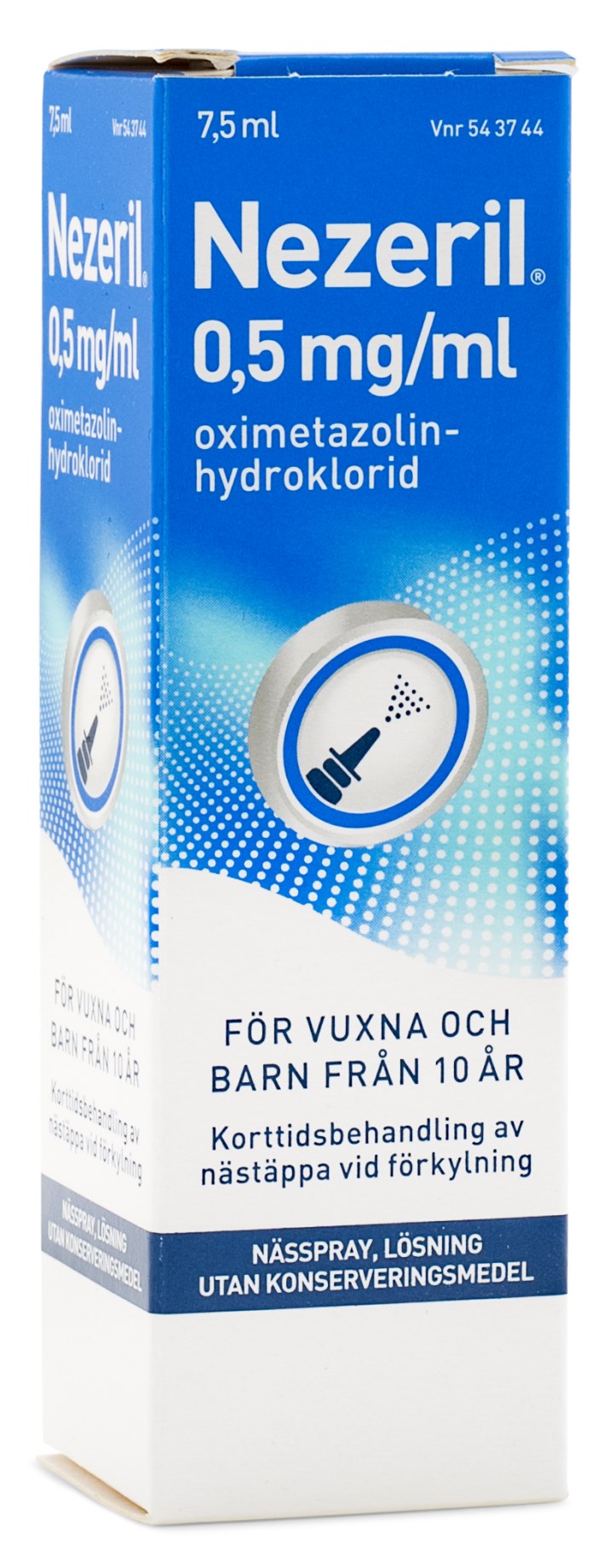Nezeril Nässpray är ett receptfritt läkemedel som lindrar nästäppa vid förkylning. Nässprayen har en snabbt avsvällande effekt som minskar täppan och underlättar din andning. Nezeril Nässpray 0,5 mg innehåller oximetazolinhydroklorid och används för korttidsbehandling.