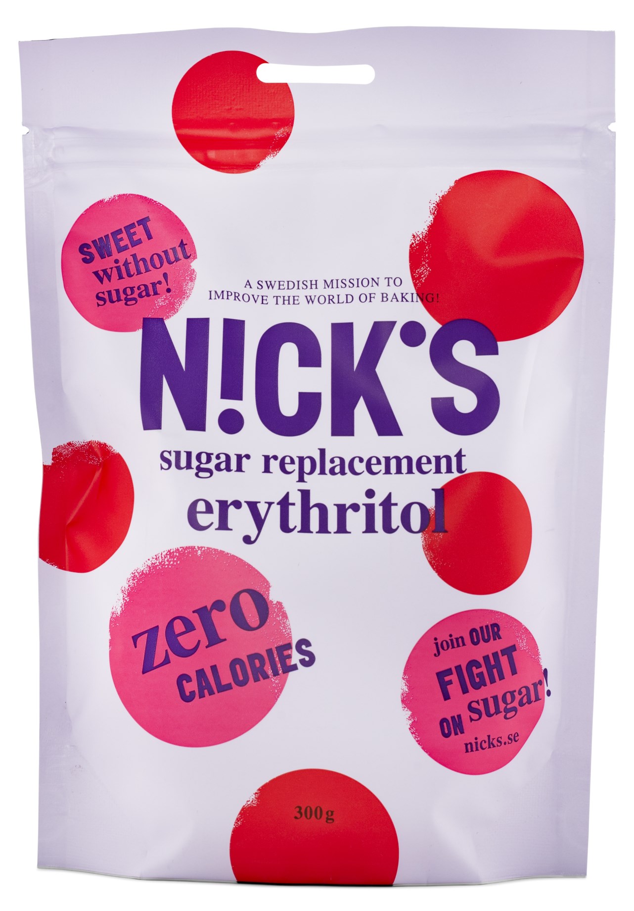 Nick’s Erythritol är ett kalorifritt alternativ till traditionellt vitt socker som passar utmärkt i all typ av bakning. Detta naturliga sötningsmedel finns bland annat i vindruvor och plommon och ger en härligt söt smak som påminner om vitt socker. Skillnaden är att erythritol inte påverkar blodsockret på samma sätt och inte ger några kalorier, vilket är fördelaktigt för dig som vill minska ditt kaloriintag av olika skäl. I näringstabeller räknas erythritol som en kolhydrat och har där namnet polyoler. Prova att byta ut strösockret i din nästa efterrätt med Nick’s Erythritol - sötman i 1 dl erythritol motsvarar cirka ¾ av sötman vitt socker.