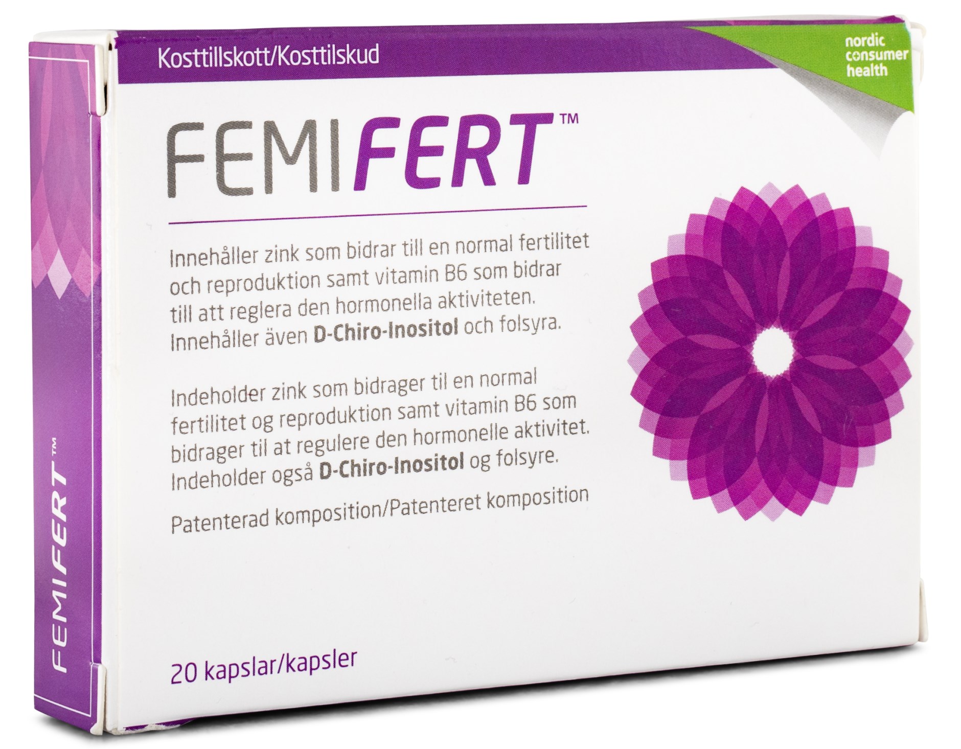 Nordic Consumer Health Femifert är en patenterad sammansättning av ämnen som är framtagen för att stödja kroppens reproduktionsprocess. Tillskottet innehåller D-chiro-inositol som ingår i cellmembranen, zink som bidrar till normal fertilitet samt vitamin B6 som stödjer hormonaktiviteten. Det innehåller även folsyra som rekommenderas till alla som planerar en graviditet.