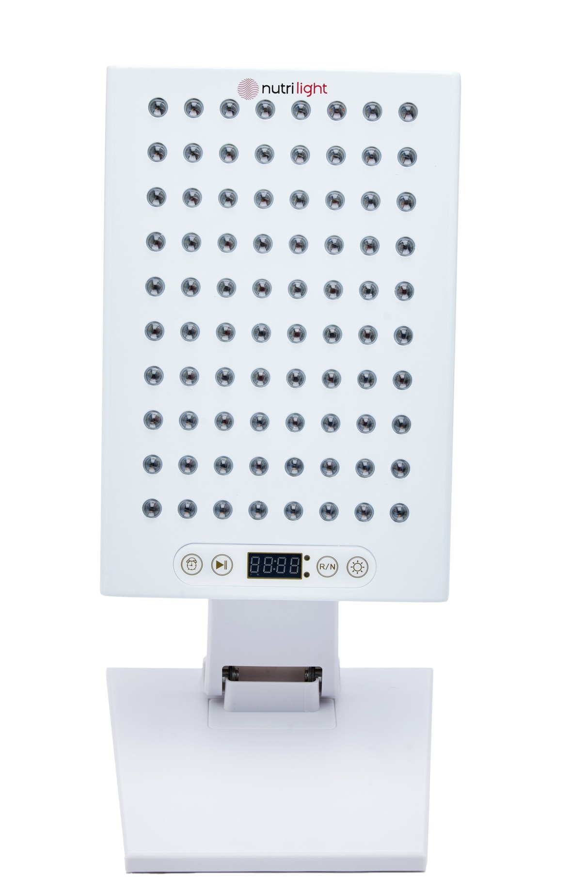 Börja dagen med Nutrilight Rödljuslampa 400 W - The Fox för en härlig start med värmande, välgörande rött ljus. Det här är lampan för dig som vill behandla större områden på kroppen. Du kan använda den för bland annat ansikte, rygg, axlar och mage. Perfekt att meditera framför, ha på skrivbordet när du arbetar eller på nattduksbordet för att optimera din sömn. Kommer med en praktisk ställning som du enkelt kan fästa på bordet eller på väggen. Lampan har 80 lysdioder med de mest vetenskapligt beprövade våglängderna (660 nm rött ljus och 850 nm nära infrarött ljus) för optimal effekt på hälsan.
