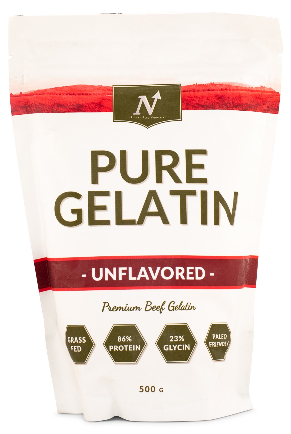 Nyttoteket Pure Gelatin är din nya konsistenskamrat. Det är ett 100% gelatinpulver som kommer från naturbetande kor. Utan doft och smak vilket gör det perfekt för att skapa härliga konsistenser i dina maträtter, desserter och bakverk, allt i köket där konsistens är viktigt! Fungerar även bra i soppor och benbuljonger som en naturlig proteinboost, då den har en hög proteinhalt på 86%. Pure Gelatin behöver värmas upp för att lösa sig helt och bildar då gelé. Paleo och ketovänlig.