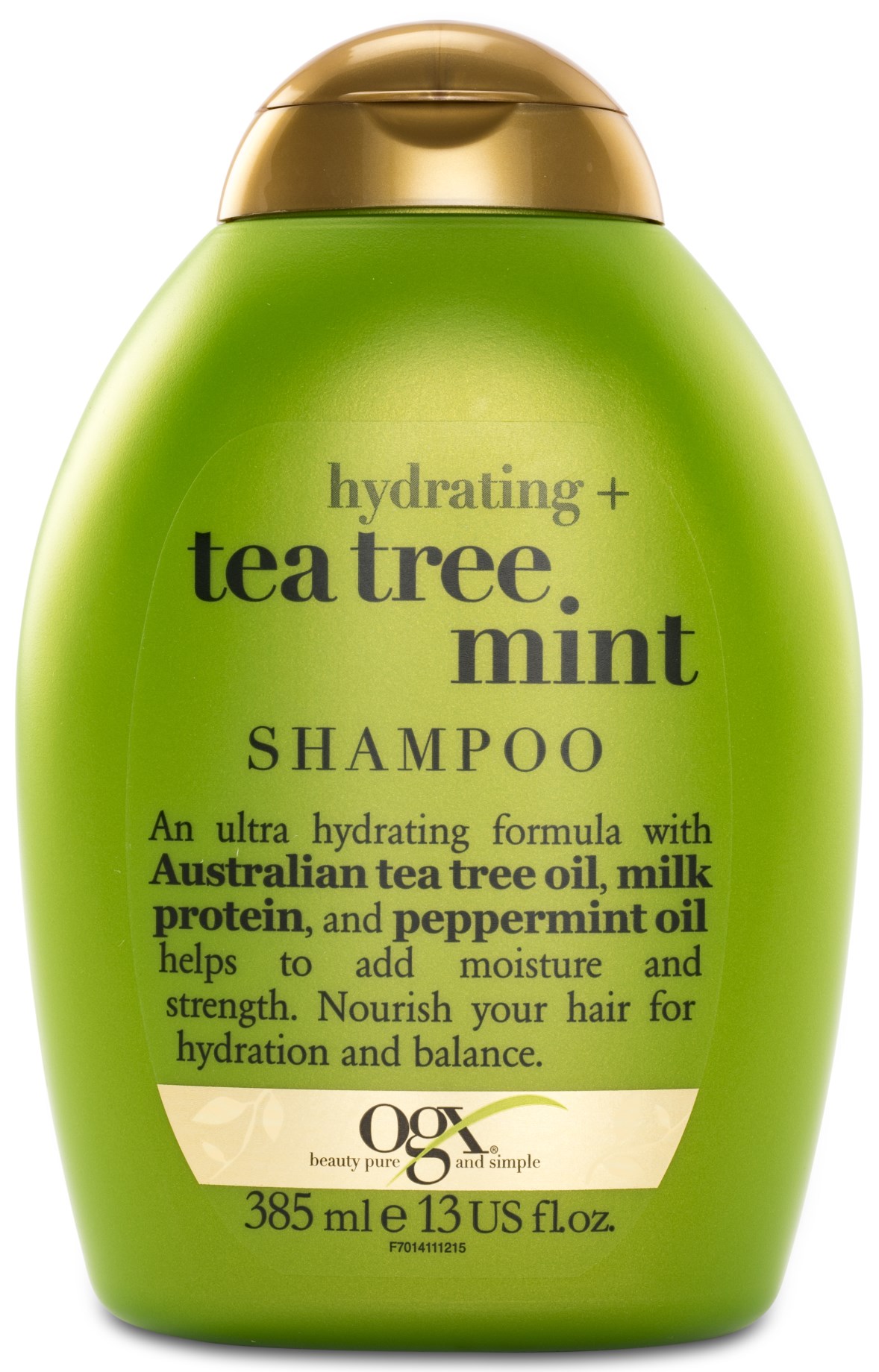 Återuppliva ditt hår med denna extra uppfriskande och balanserande formula från OGX. Tea tree mint Schampo innehåller en unik blandning av äkta australiensisk tea tree oil (teträolja), tillsammans med fräsch pepparmynta och mjölkprotein. Proteinerna hjälper till att återuppbygga skadat hår för en stark och frisk känsla, medan tea treeolja ger näring och fukt på djupet, toppat med härligt väldoftande mint. Blandningen hjälper också en irriterad hårbotten att återfå en normal balans för mindre irritation. OGX Tea tree Mint Shampoo kan användas av alla hårtyper, och passar extra bra till normalt och torrt hår, samt känslig hårbotten.