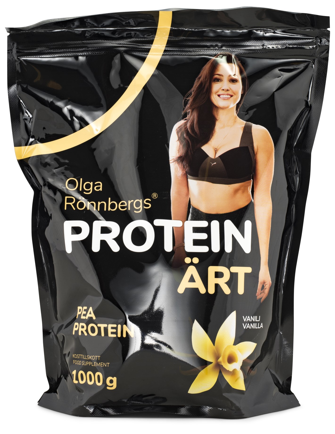 Ärtprotein är ett högvärdigt och vegetabiliskt protein som är utmärkt att komplettera ditt vanliga kostintag med. Olga Rönnbergs ärtprotein finns i två goda smaker, vanilj och skogsbär och är naturligt fritt från gluten, mjölk och soja. Blanda proteinet med vatten och drick shaken som den är eller blanda det i en god smoothie för lite mer smak och för att öka proteininnehållet. Protein är ett viktigt näringsämne bland annat när det gäller muskeluppbyggnad och för en effektiv återhämtning.