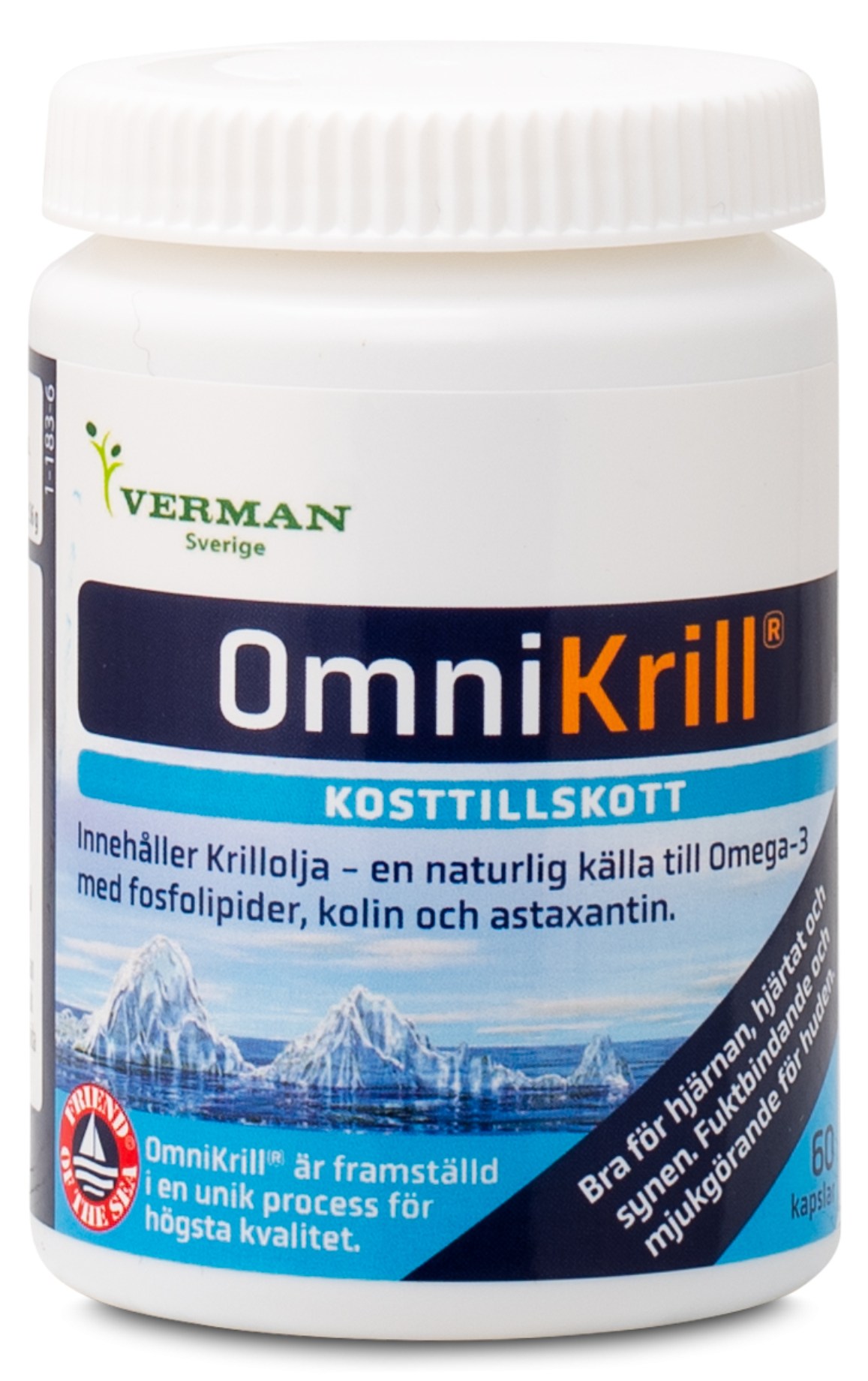 Omni Krill innehåller omega-3 från krill som är fiskad i Antarktis och därför en mycket ren olja. Oljan är unik då den förutom omega-3 också innehåller antioxidanten astaxantin samt fosfolipider. Krillolja har ett högt innehåll av både EPA och DHA som är bra för en normal hjärthälsa. Krillen är hållbart fiskad och kommer från platser som följer reglerna som är fastställda av den internationella miljöcertifieringsorganisationen NSF.