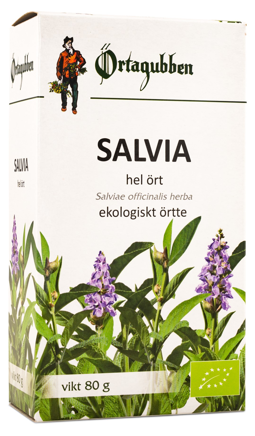 Örtagubben Salvia (Salvia officinalis) är perfekt för dig som vill krydda maten med salvia eller dricka som salviate. Salvia är en uppskattad kryddväxt som länge använts både som smaksättare och naturmedel, mytomspunnen inom örtkonsten. Salvia har en tydlig smak med bitter ton. Örtagubben Salvia består av hel ört från ekologisk salvia.