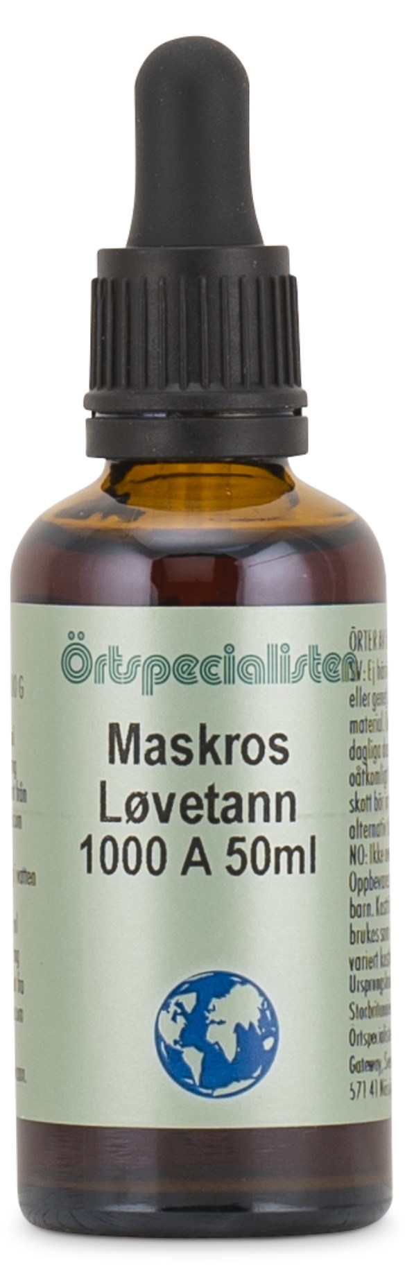 Örtspecialisten Maskrosrot 1000A från Örtspecialisten innehåller extrakt från 2000 mg torkad rot från maskros (Taraxacum officinale) från Polen. Drick 1 ml två gånger per dag utblandat i vatten.
