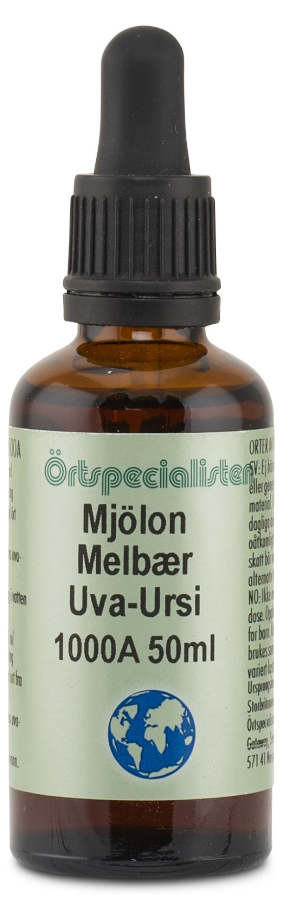 Örtspecialisten Mjölon / Uva Ursi 1000A är ett flytande extrakt av bäret mjölon, även kallat uva ursi. Mjölon förekommer främst i norra Europa där det använts i hundratals år. Bärets aktiva beståndsdelar är arbutin (kinon), hydrokinoner, flavonoider, bitterglykosider och garvämnen.
