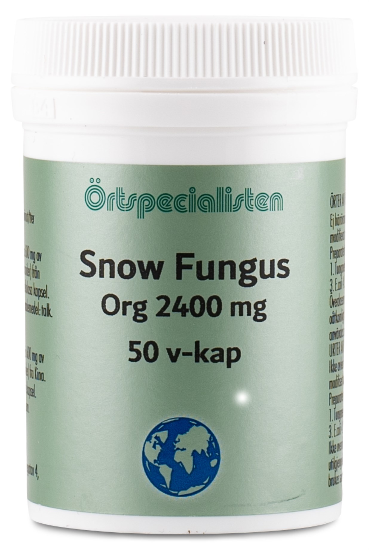 Örtspecialisten Snow Fungus är ett tillskott med svampen Tremella funciformis, en populär svamp som växer naturligt i tropikerna och som länge använts inom traditionell asiatisk medicin för sina närande egenskaper. I Kina, Korea och Japan används extrakt från svampen i hudkrämer i ett återfuktande syfte. Snow Fungus är även högt värderad för sina antioxidativa egenskaper. Odlad i Kina under kontrollerade miljöförhållanden för att garantera bästa möjliga kvalitet.
