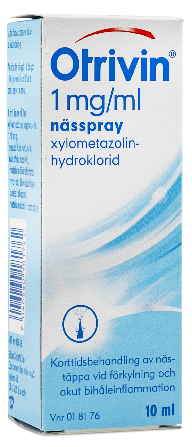 Otrivin Nässpray kan användas vid både förkylning och bihåleinflammation. Denna nässpray har avsvällande effekter genom att öppna näspassagen och efter endast några minuter kan du andas fritt igen. Spreja Otrivin Nässpray 2-3 gånger dagligen i vardera näsborre eller vid behov. Otrivin Nässpray kan användas upp till 10 dagar i följd.