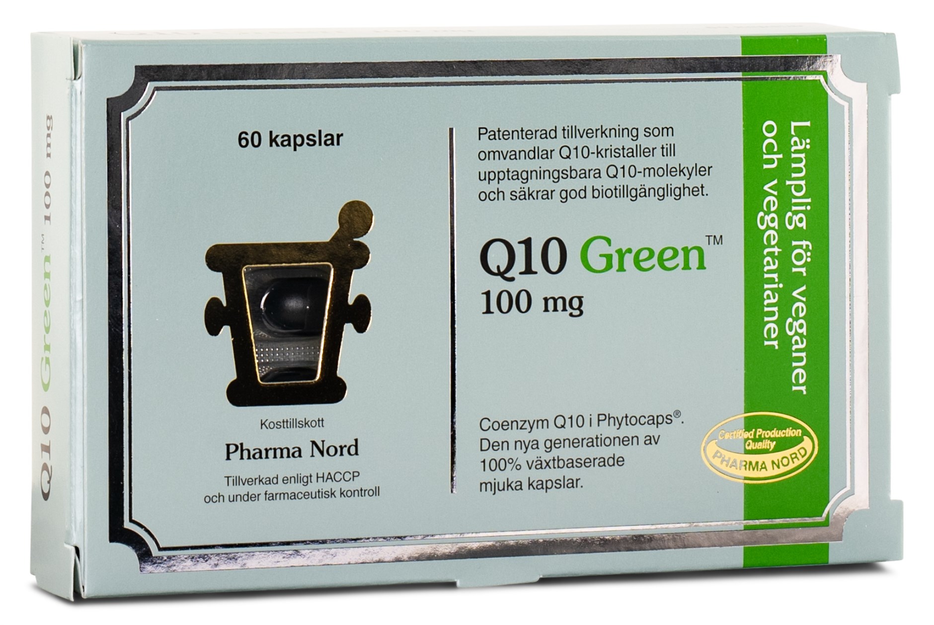 Q10 Green 100 mg är ett biotillgängligt enzym från Pharma Nord med antioxidanten Q10. De mjuka kapslarna är 100 % vegetabiliska och innehållet är löst i vegetabilisk olja. Pharma Nord har en patenterad tillverkningsmetod som gör Q10-formulan biotillgänglig. Allt sker på företagets fabrik i Danmark för högsta kvalitet och säkerhet.