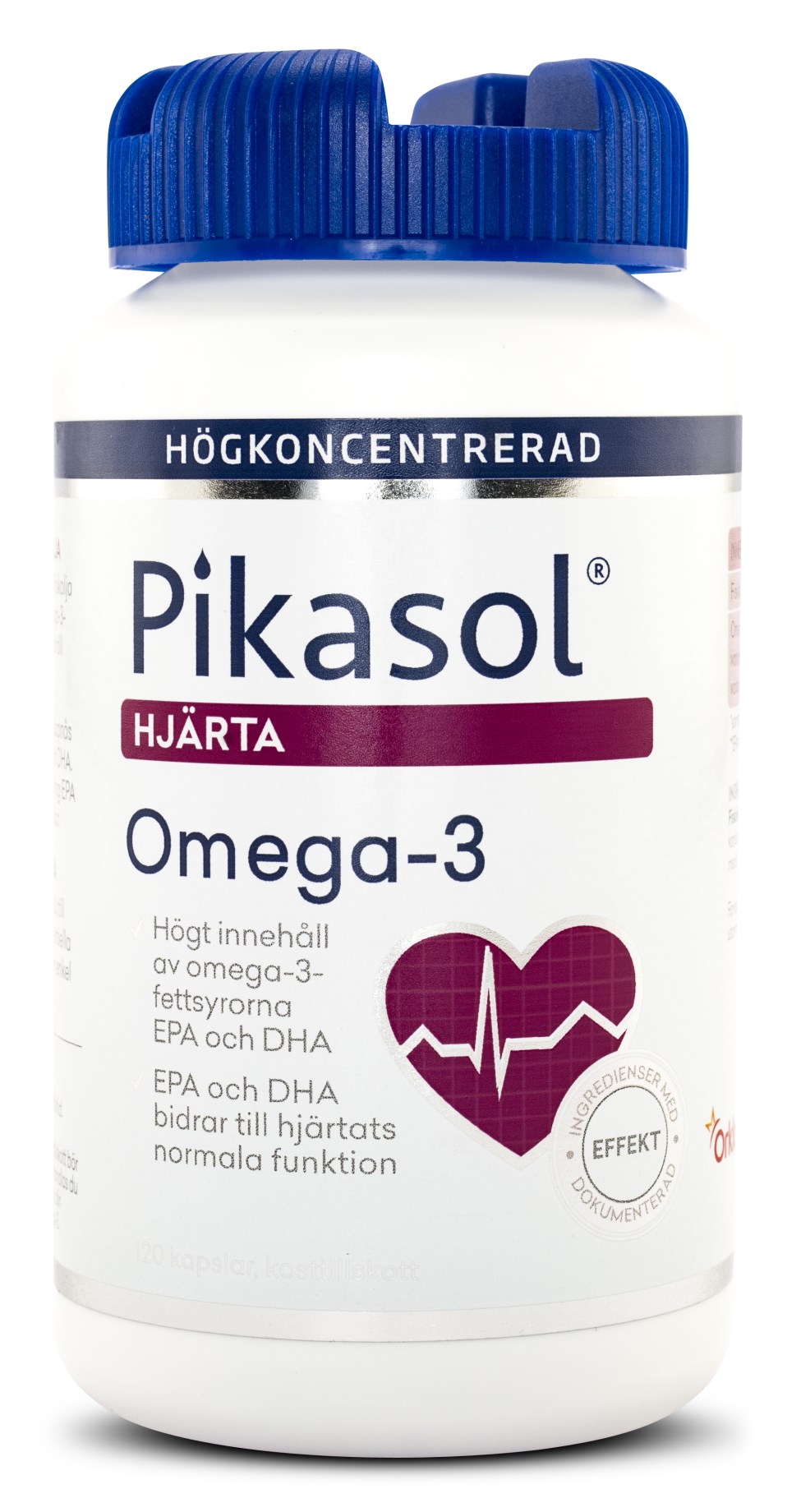Den största källan till omega-3 är fet fisk som lax, makrill och sill, men de flesta av oss äter för lite fisk för att vi ska få i oss en tillräcklig mängd omega-3. Pikasol kan komplettera ditt dagliga intag.