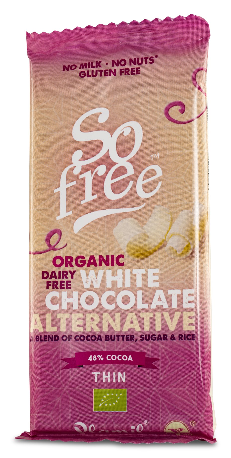 Plamil So Free Milk Chocolate är ett alternativ till mjölkchoklad, där man använt ekologiskt rispulver istället för mjölkprodukter. Perfekt för dig som är mjölkproteinallergiker eller laktosintolerant men ändå vill ha en god ljus choklad.