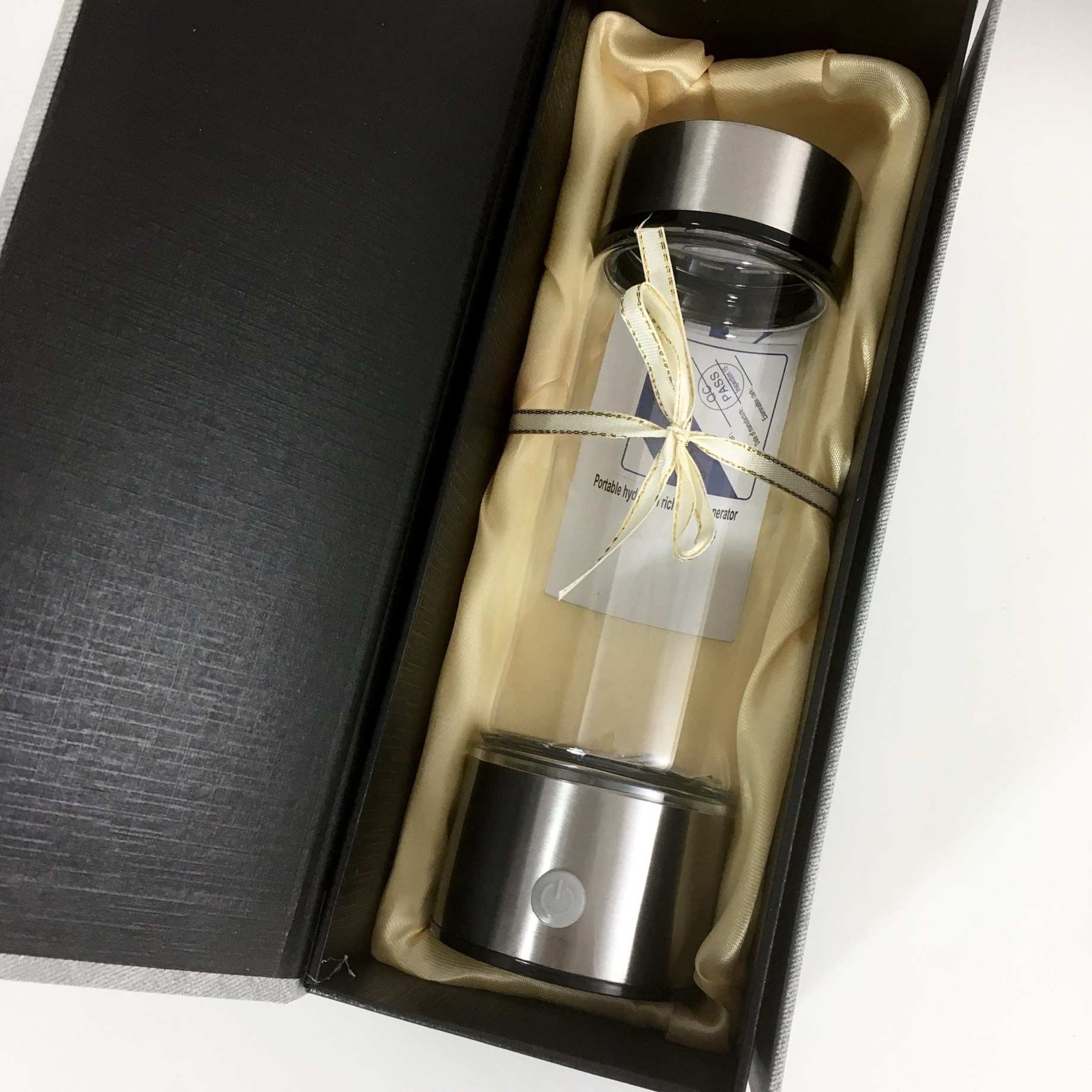 PlanetsOwn H2 Flaska Hydrogen är en praktisk vattenflaska som låter dig göra ditt eget vätevatten hemma. Vätevatten är rent vatten med tillsatta vätemolekyler, som i detta fall skapas genom elektrolys direkt i flaskan. Resultatet är ett luktfritt, färglöst och smakfritt vatten som är säkert att dricka för både vuxna och barn. Du fyller bara flaskan med vatten och laddar den sedan med den medföljande USB-kabeln. Efter ca 2-3 minuter har vätemolekylerna laddats i vattnet och det är redo att drickas. PlanetsOwn H2 Flaska Hydrogen har en stilren design i rostfritt stål och glas samt levereras i en fin presentask.