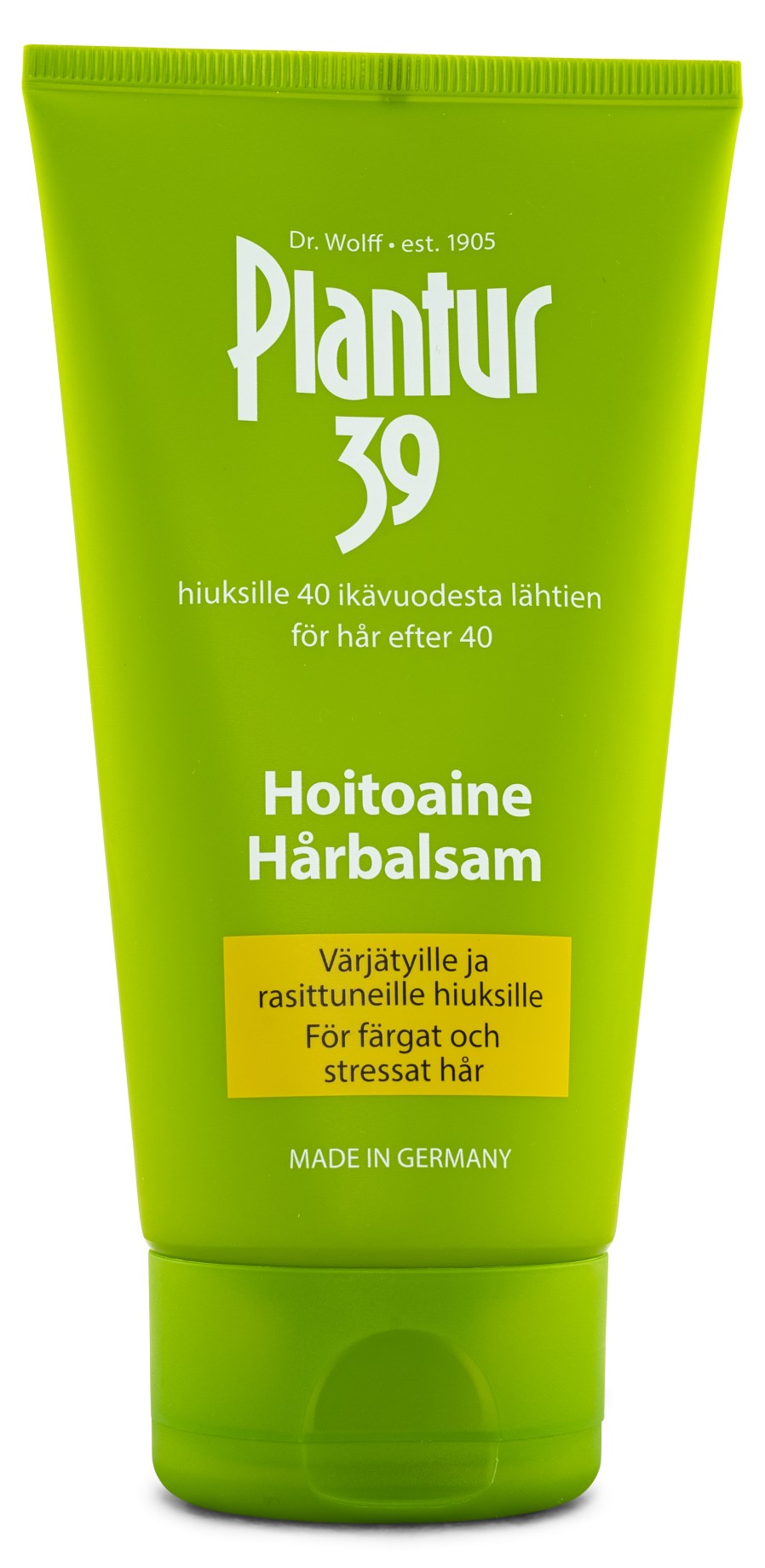 Plantur39 Balsam Färgat Hår är ett vårdande och reparerande balsam för färgat hår. Det är speciellt framtaget för kvinnor över 40 år som upplever att de får tunnare hår i samband med klimakteriet. Innehåller stärkande ämnen från vitt te, majs, vete och avokadoextrakt.