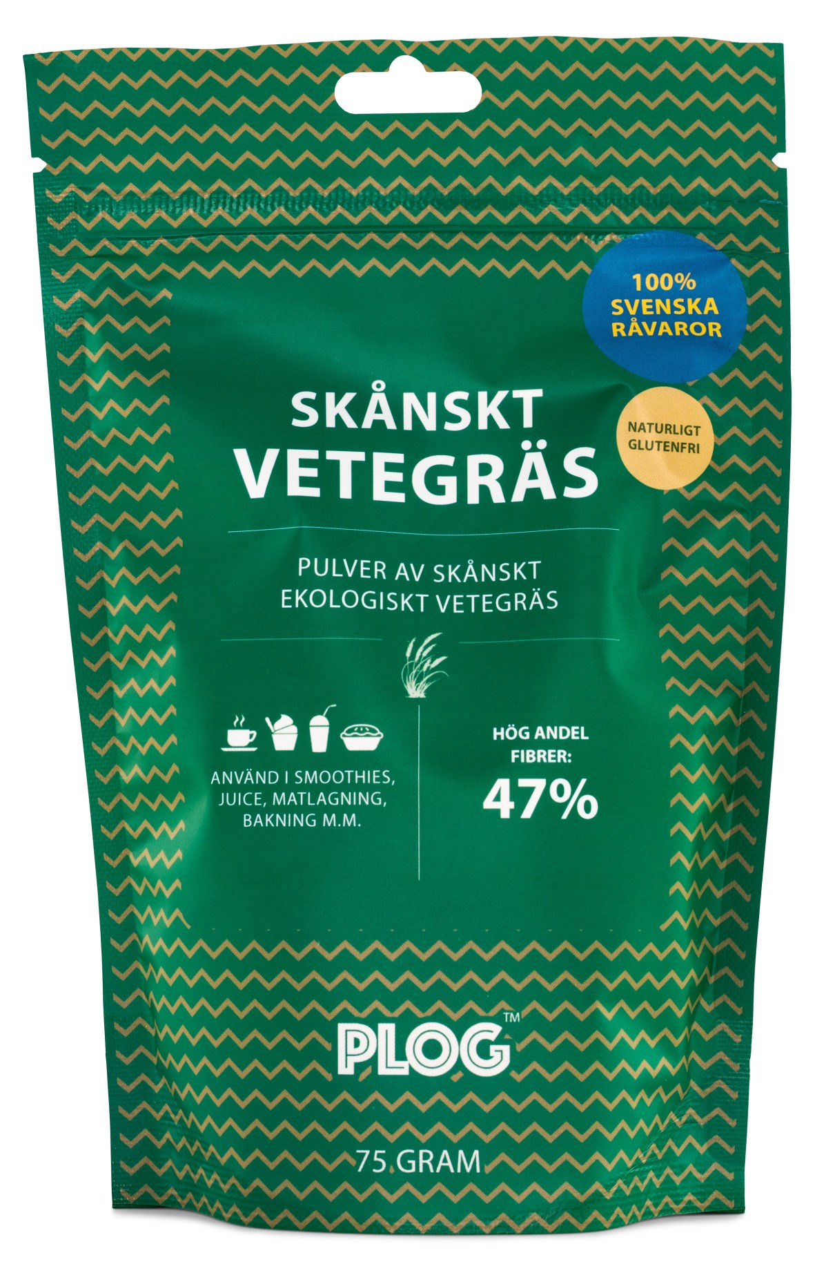Krydda din smoothie med näring från svenskt vetegräs - en naturlig källa till bland annat järn, C-vitamin och fibrer. PLOG Skånskt Vetegräs kommer som namnet avslöjar från Skåne, närmare bestämt Hagavik Gård i Trelleborg. Här odlas det på KRAV-ekologisk mark och torkas och pulvriseras i en närliggande produktionsanläggning. TIllverkningsprocessen överstiger aldrig 42 grader, vilket kvalificerar vetegräspulvret till rawfood med alla näringsämnen bevarade i den slutgiltiga produkten. Använd som ett smoothiepulver och blanda i dryck, eller strö över yoghurt eller gröt som en extra näringsboost i vardagen.