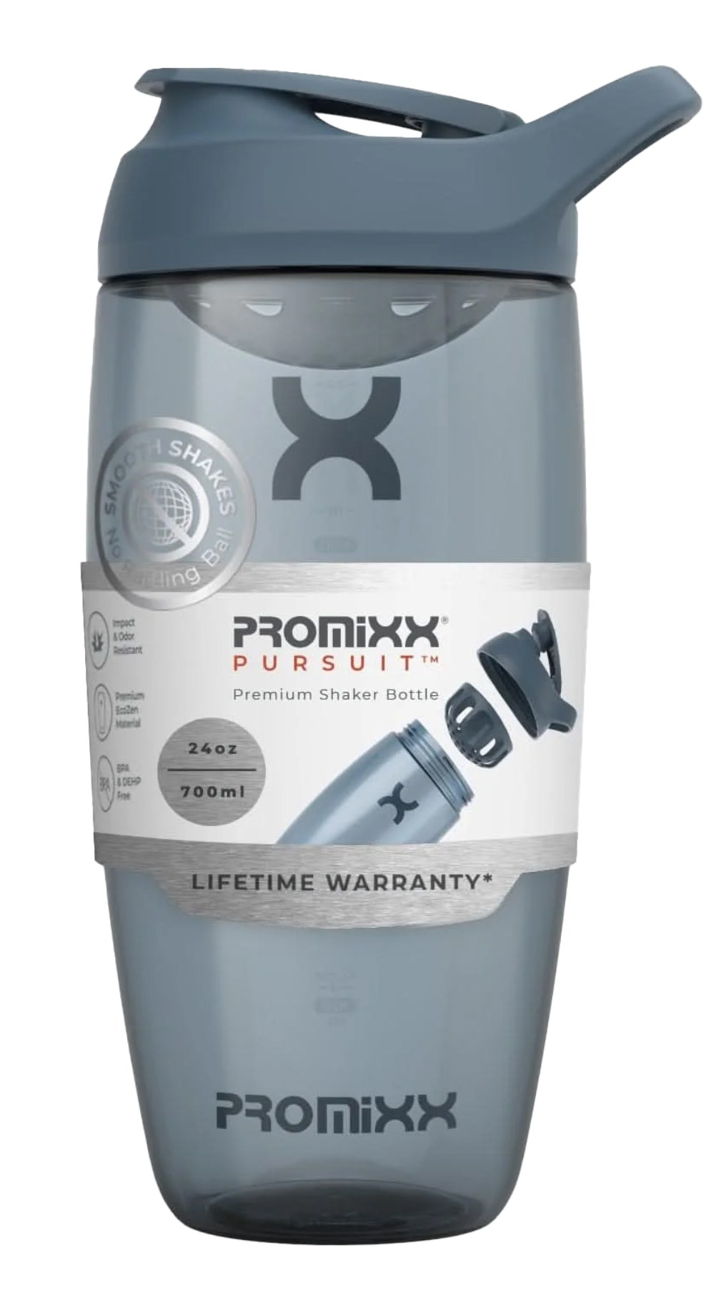 Promixx Pursuit Shaker är ett shaker för både träning och vardag. Skaka enkelt proteinshakes eller pannkakssmet med hjälp av det smidiga nätet. Shakern diskas sedan enkelt på övre hyllan i diskmaskinen. Den är tillverkad i slittålig ECOZEN-plast som är både luktfri och smakfri. Den robusta enkelheten i Promixx Pursuit Shaker gör flaskan till ett givet inslag i vardagen, både i träningsväskan och hemma. Finns i flera olika färger – vilken blir din favorit?