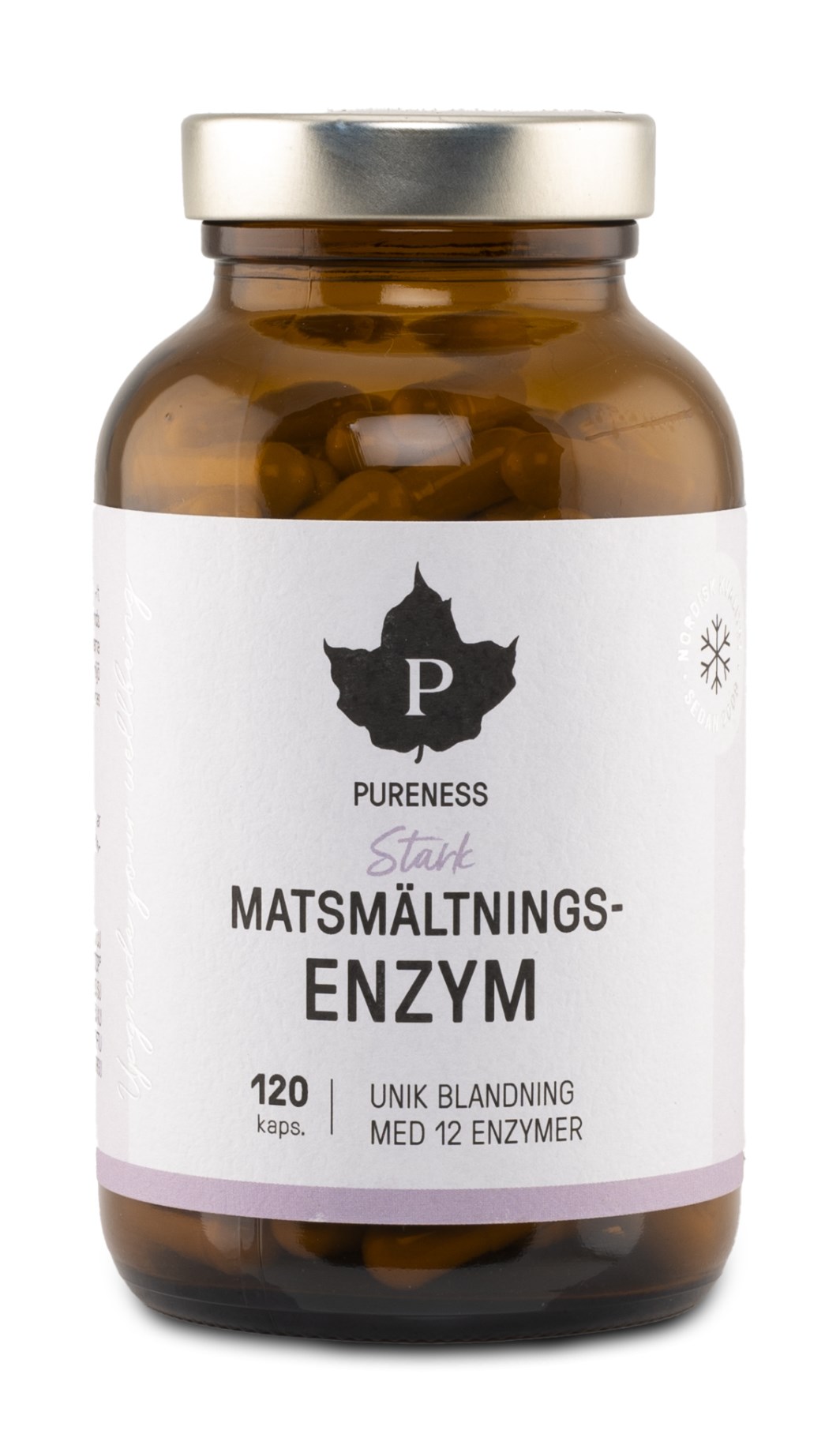 Stark Matsmältningsenzym från Pureness hjälper till att omvandla mat till näring genom att bryta ner kolhydrater, protein och fett i kroppen. Pureness Stark Matsmältningsenzym innehåller 12 noga utvalda enzymstammar. Tekniken som använts för att framställa enzympreparatet gör att enzymerna klarar av både mycket sura miljöer och mycket basiska miljöer.