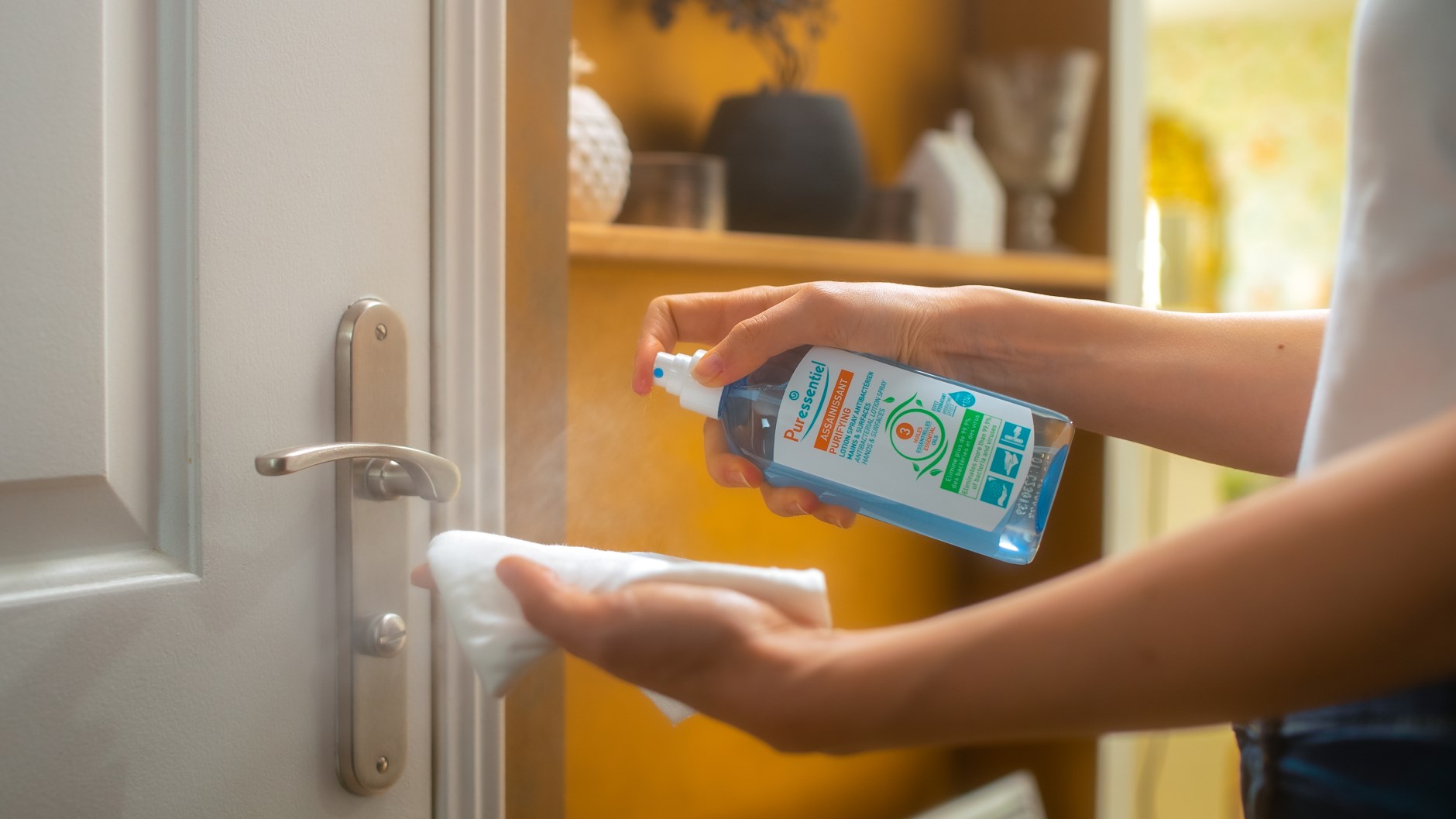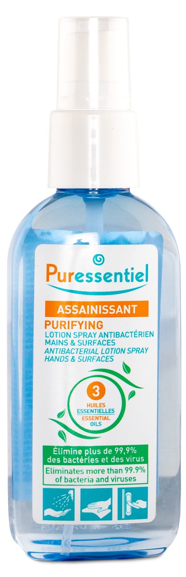 Desinfektera dina händer eller valfri yta med Puressentiel Purifying Antibacterial Lotion Spray Hands & Surfaces, en effektiv antibakteriell handspritsgel i sprayform med eteriska oljor och växtbaserad alkohol. Kan användas på dina händer samt på andra ytor, till exempel mobilskärm, tangentbord eller handtag. Tar bort 99,9 % av alla virus och bakterier! Ett smidigt sätt att rengöra händerna utan vatten, tvål eller sköljning. Med återfuktande aloe vera som motverkar torrhet.