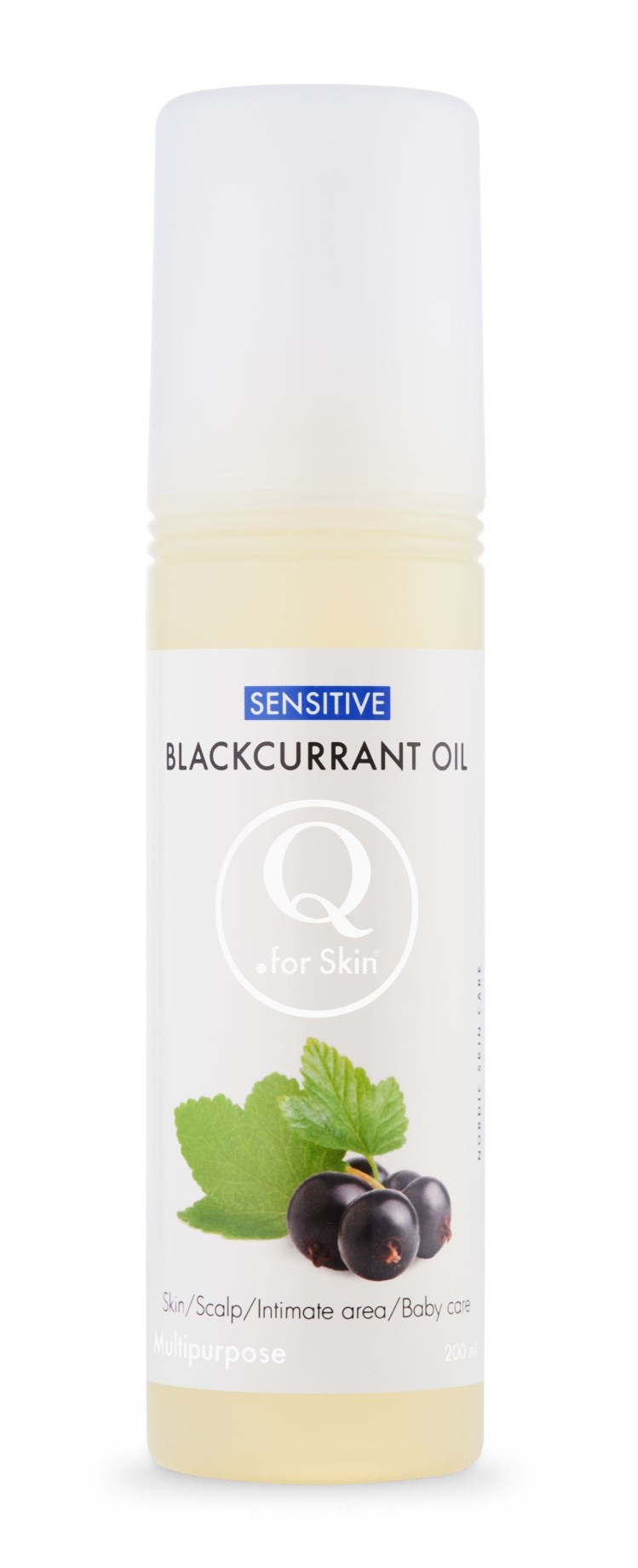 Slipp torr hud och upplev fördelarna med Q for Skin Blackcurrant Oil! En växtbaserad oljelotion fylld med näringsrika omegafetter som skyddar och mjukgör känslig hud. Den milda oljan passar lika bra till kroppen, ansiktet och underlivet som till bebisens skorviga huvud och kan även vara en följeslagare genom den känsliga tiden med graviditet och amning. Genom att återställa fettbalansen bildas en behaglig barriär som skyddar, vårdar och återskapar hudens naturliga motståndskraft. Oljan sprayas enkelt på och absorberas snabbt av kroppen utan att kladda.