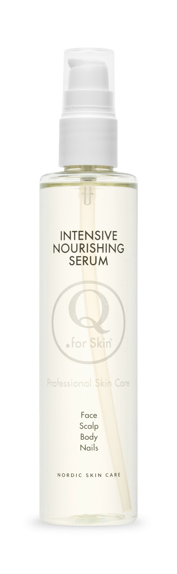 Intensive Nourishing Serum från Q for Skin är ett mångsidigt, dermatologiskt testat oljeserum som kan användas för att mjuka upp ansikte, kropp och hårbotten! Det djupverkande och lättabsorberande oljeserumet främjar en stark och spänstig hud och en väl återfuktad hårbotten fri från torrhet. Berikad med näringsrika fettsyror som vårdar, skyddar och återställer en torr och fettfattig hud i extra behov av kärlek. Ingredienserna svartvinbärsfröolja, sheasmörsextrakt och kokosolja hjälper till att återskapa hudbarriärens naturliga fukt- och fettbalans samt lämnar huden mjuk, följsam och balanserad.