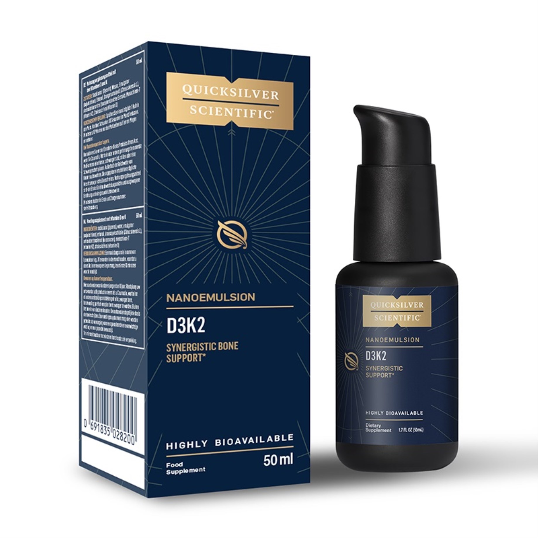Quicksilver Scientific D3-K2 är ett flytande kosttillskott med vitaminerna D3 och K2 i kombination. Vitamin D3 är ett viktigt vitamin som är svårt att få i sig vintertid, då den stora källan till vitaminet är solens strålar. D-vitamin bidrar till ett normalt immunsystem och till benstommens upprätthållande. Vitamin K2 bidrar även det till benstommens funktion samt till blodets koaguleringsförmåga. Quicksilver Scientific D3-K2 innehåller 2500 IE D3-vitamin och 90 mikrogram K2-vitamin per dosering. Pumpflaskan ger dig ett exakt mått, och du droppar bara rakt på tungan. Tillskottet har en god smak.