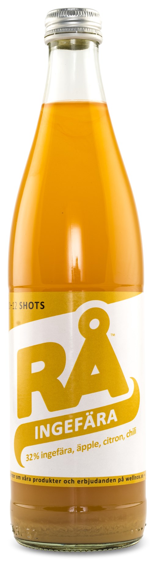 WellNOx RÅ Ingefärsdryck innehåller en fantastisk smakkombination av råsaft från 32 % ingefära, lite hetta från pressad chili, friskhet och syrlighet från råsaft av citron som sedan avslutas med rund sötma från äpple. RÅ Ingefärsdryck är framtaget till dig som tänker på vad du äter och dricker och innehåller därav inga tillsatser och är helt osötad.
